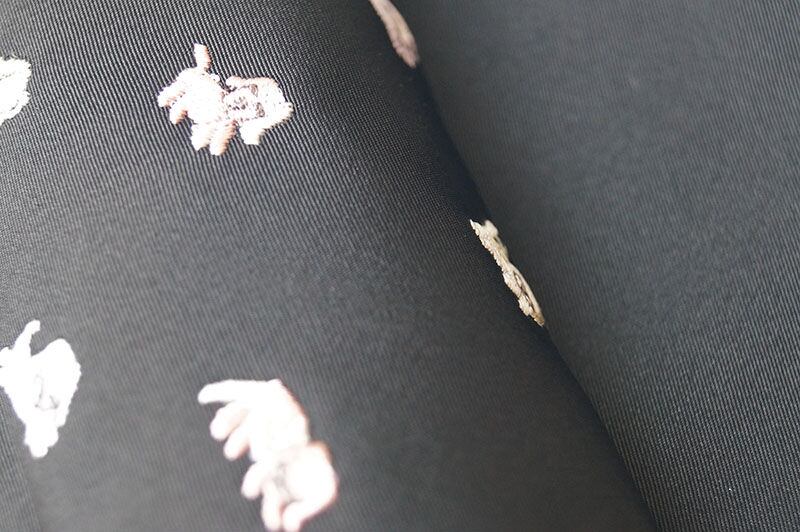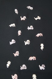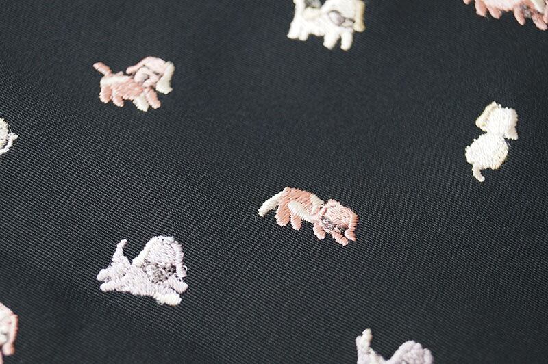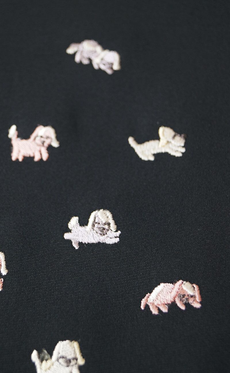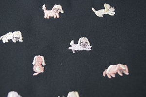 【半衿】黒地 イヌ柄 刺繍半衿 №220212Ⓕ