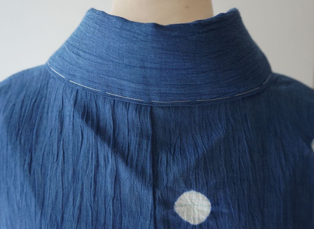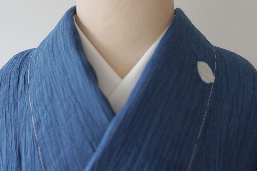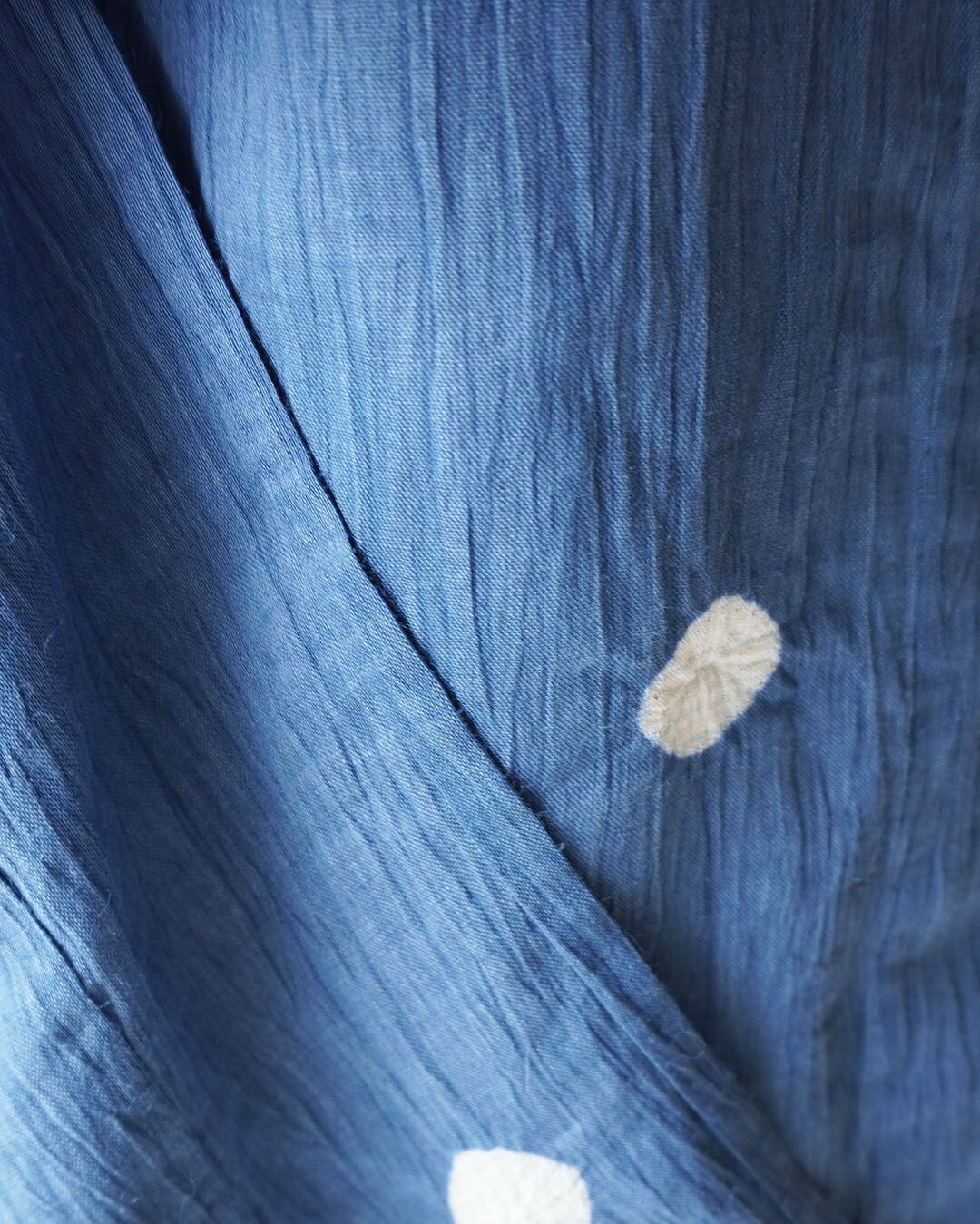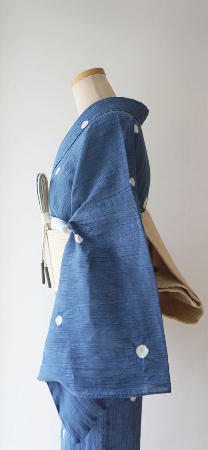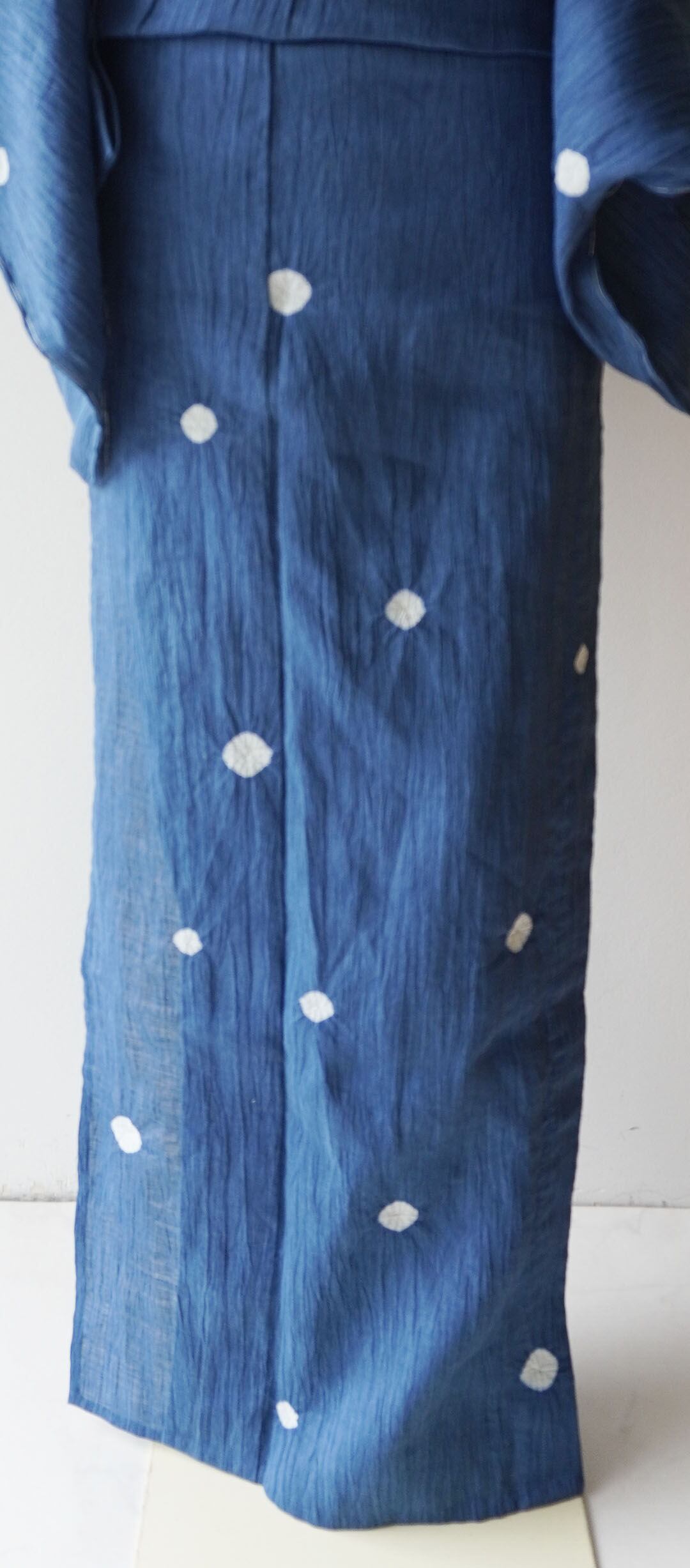 【夏きもの】泰荘上布 近江ちぢみ ドット絞り柄 藍色 仕立て下ろし品