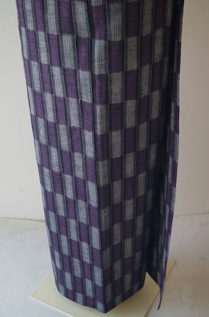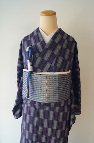 【単衣】縦細縞市松 久留米絣