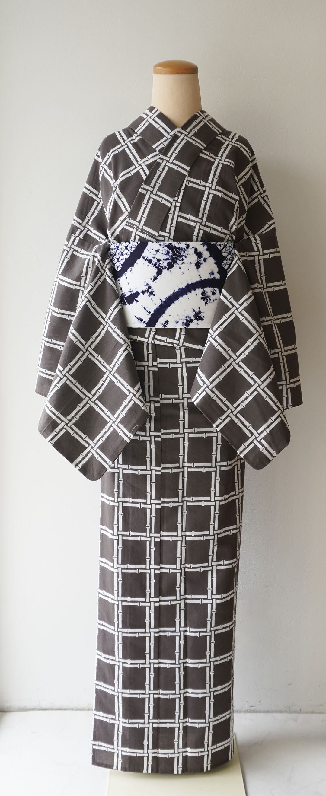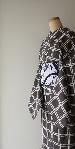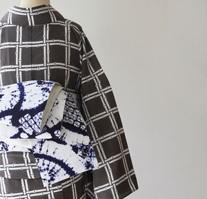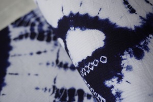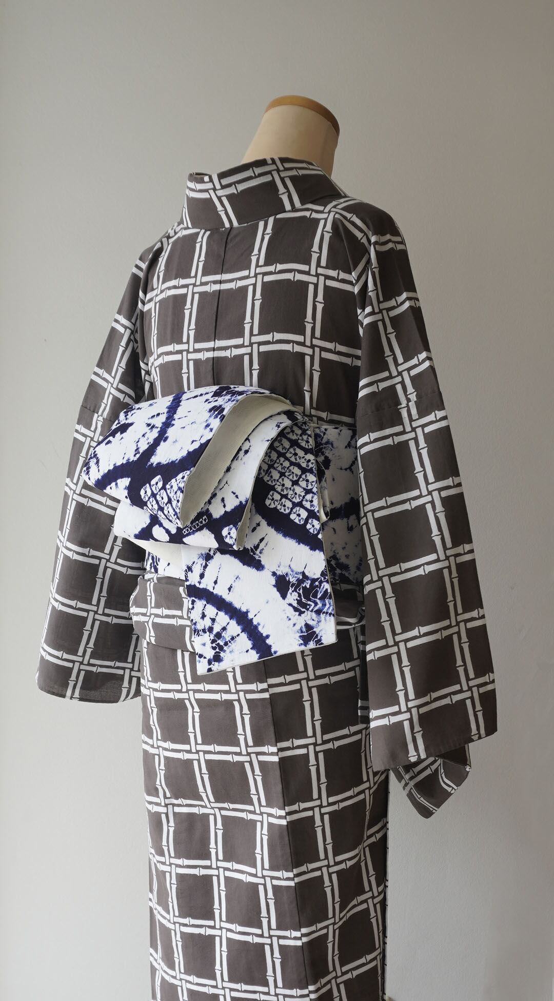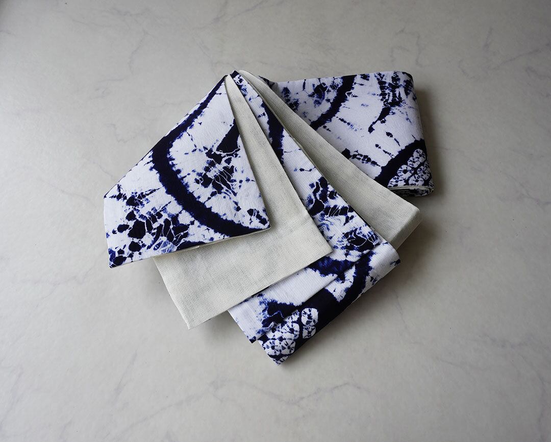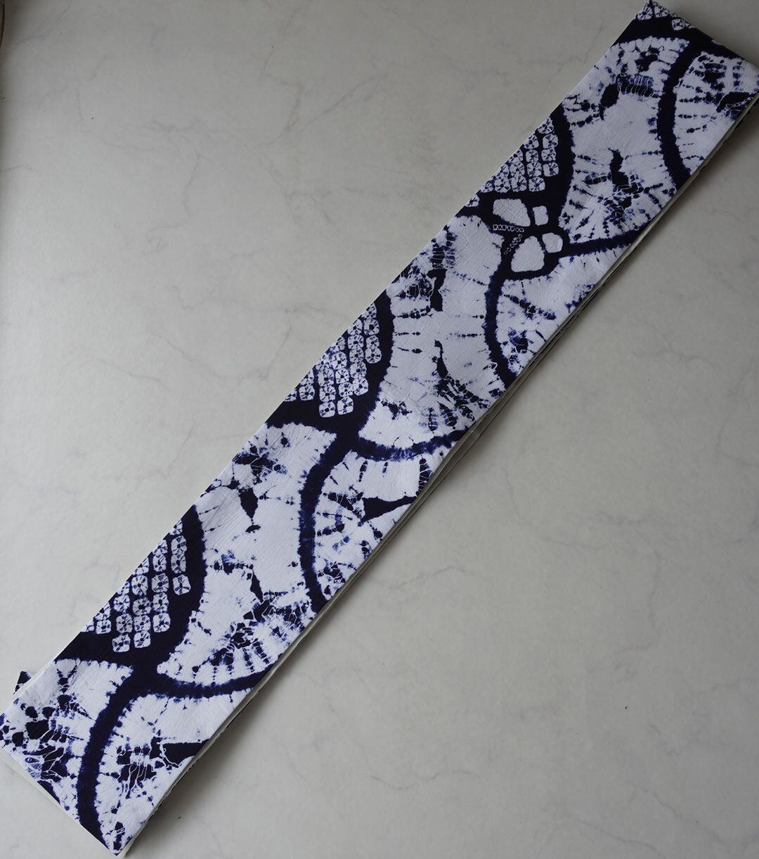 【半幅帯】濃紺×白 分銅文 手絞り 半幅帯 №230619①