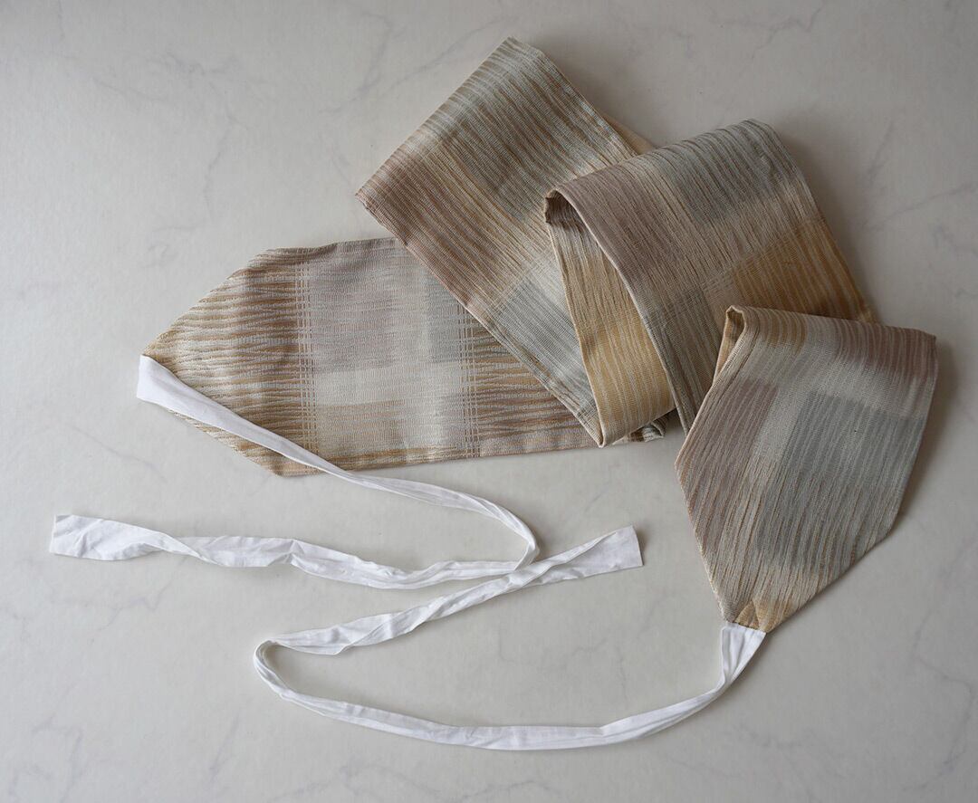 左右についている木綿の紐で結びつけ