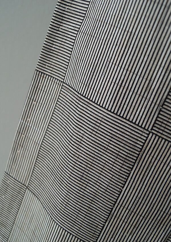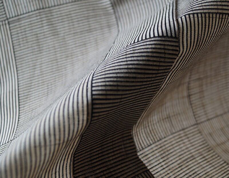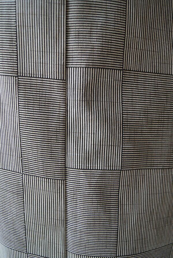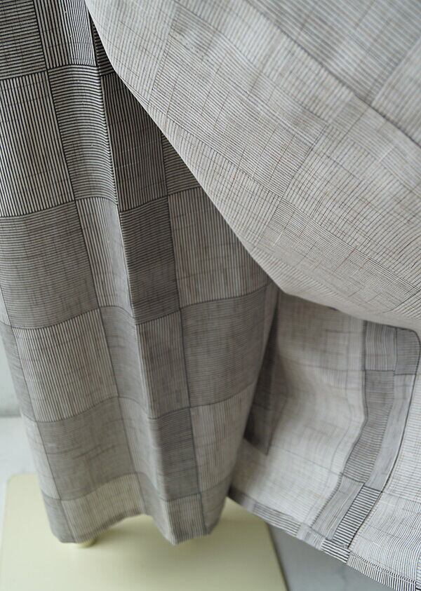 細縞が縦横に、大きな市松柄となった