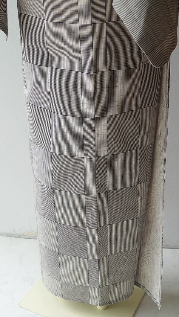 【浴衣】砂色×海松茶 変わり市松柄 浴衣