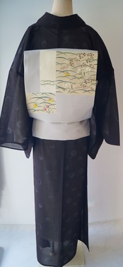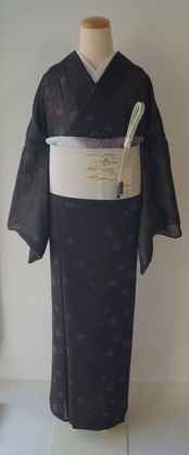黒色地のきりりとした印象の紗のお着物です。