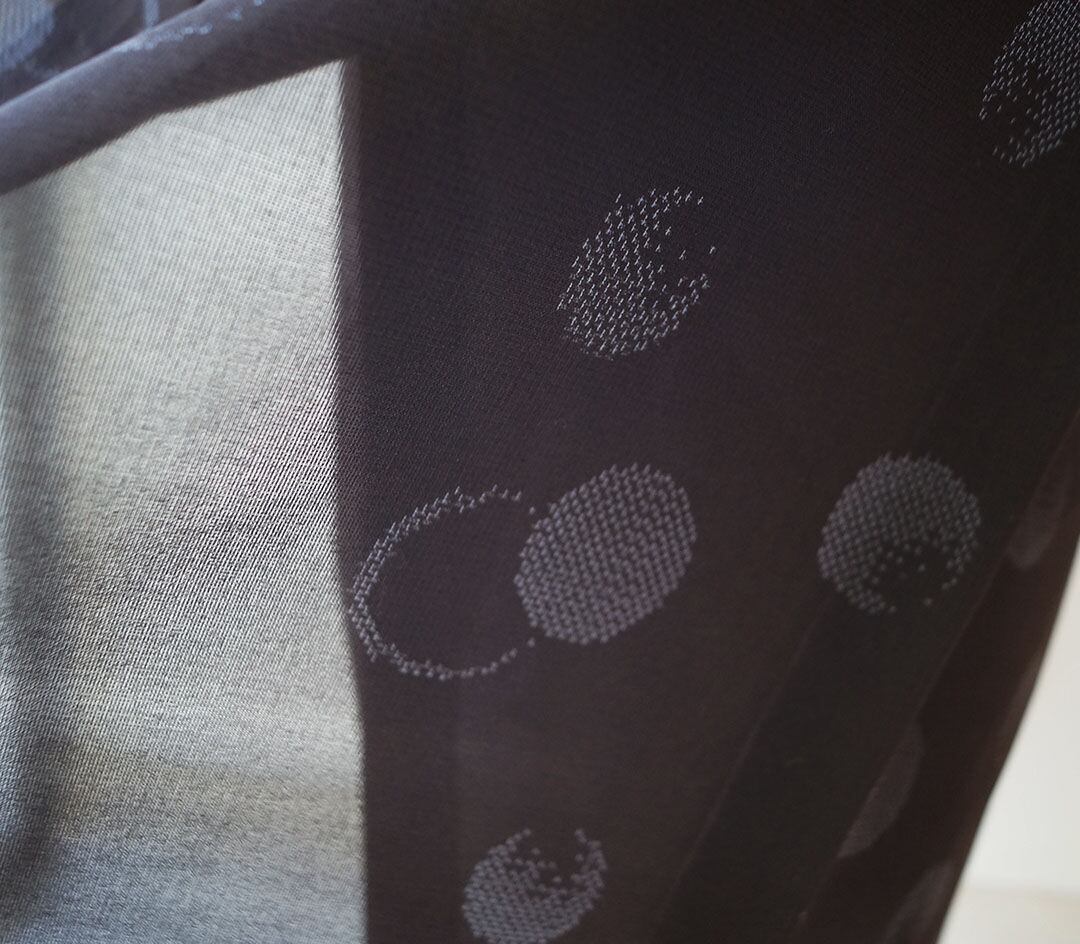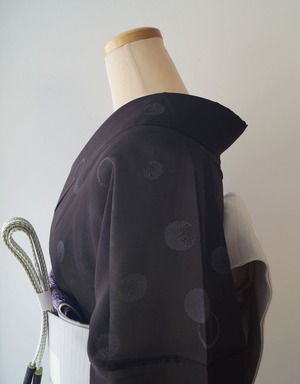 【夏・紗】黒地 変わり丸文 紗小紋