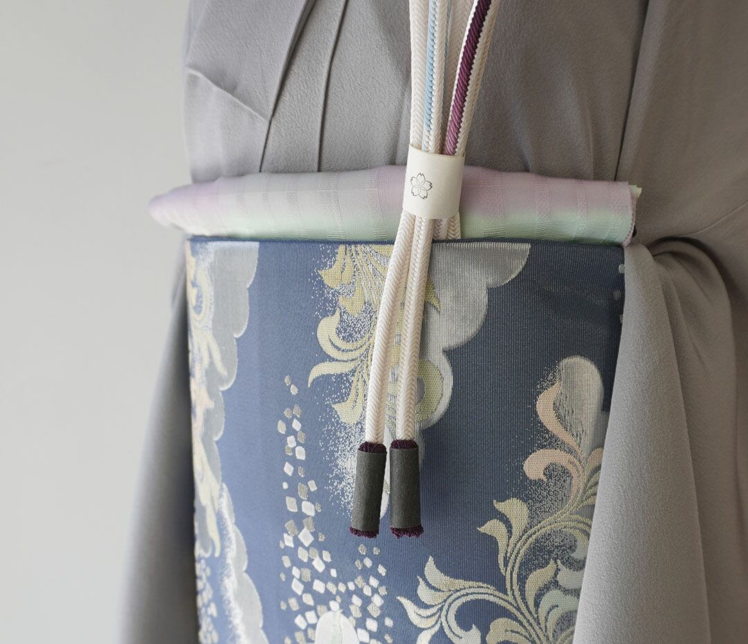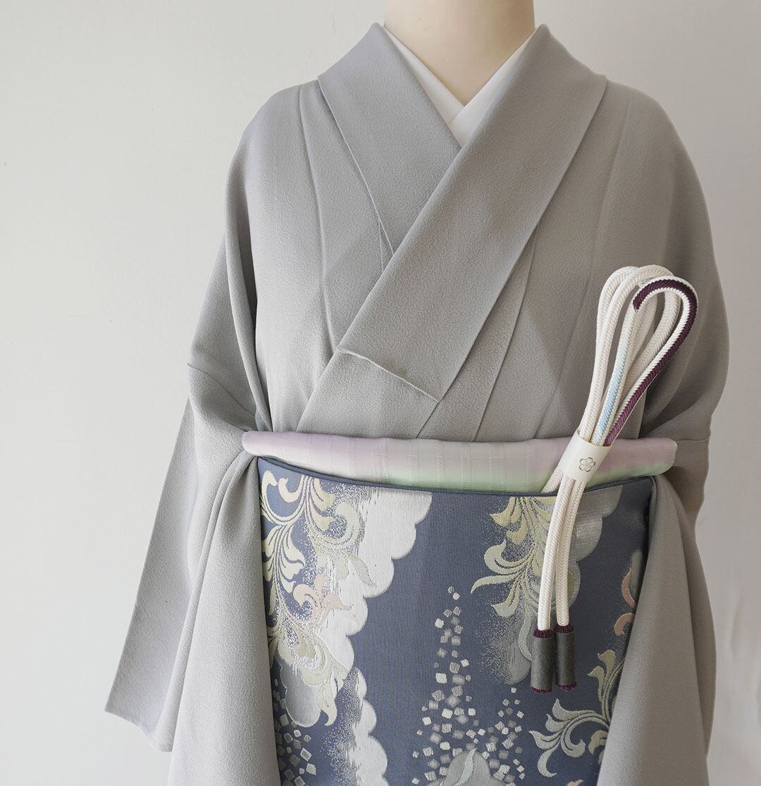 紺鼠色に銀糸使いの華やかな帯。