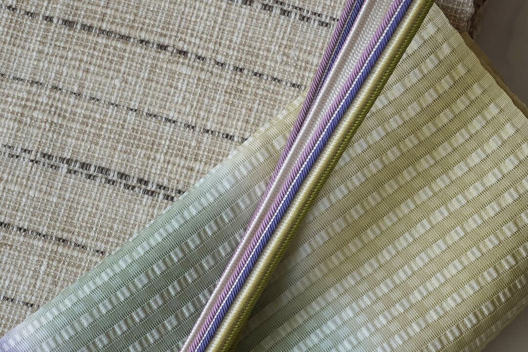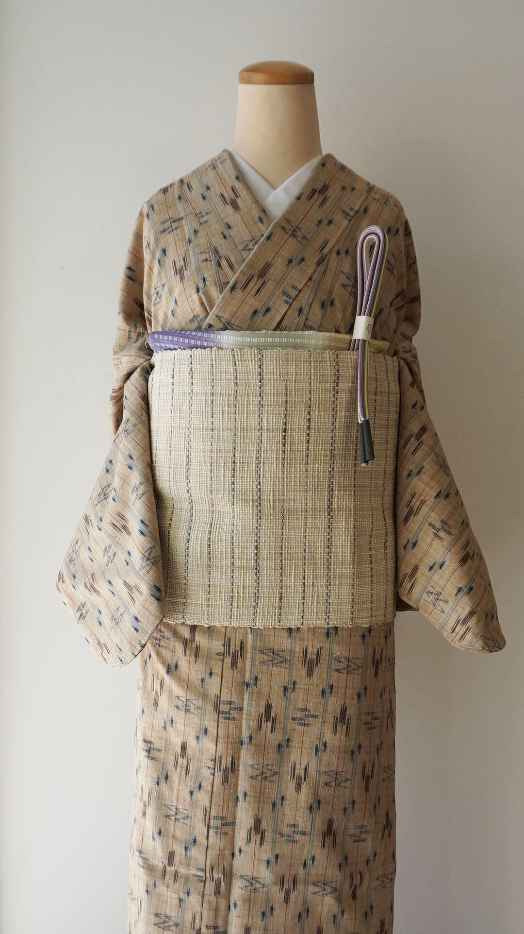 生成・白橡・消炭色の三色の糸を織り交ぜた