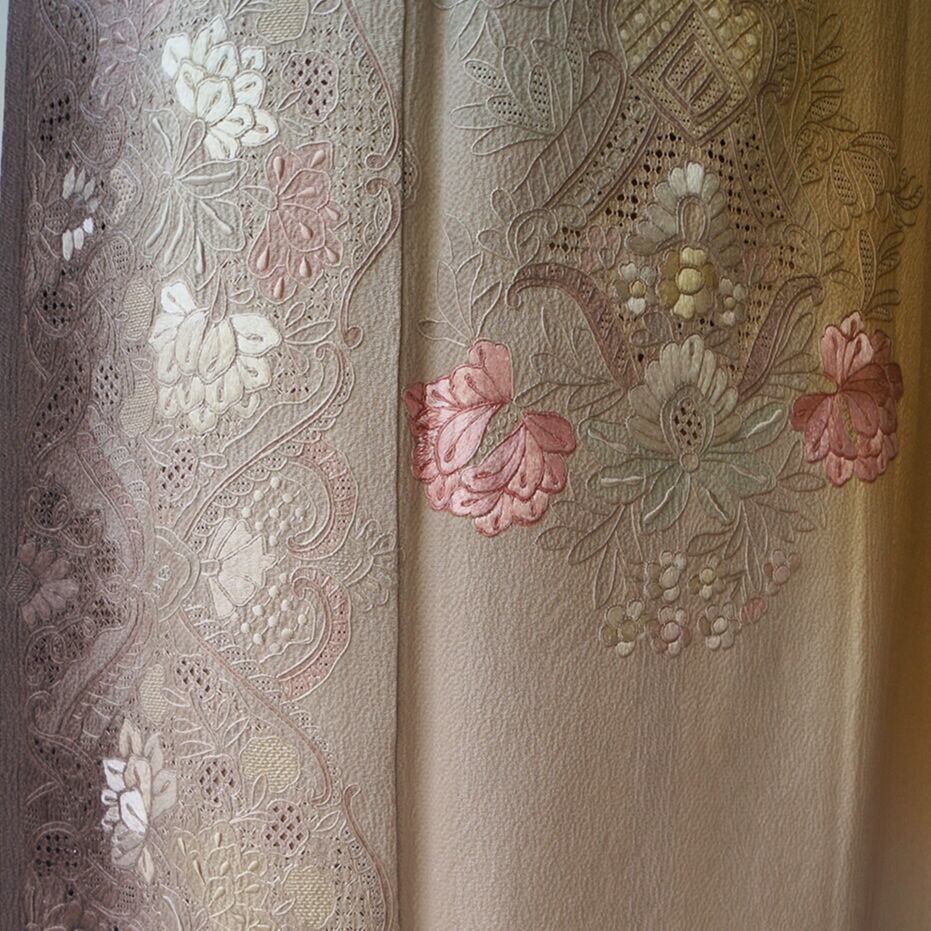 【袷】山吹茶色暈し 翠山刺繍 訪問着