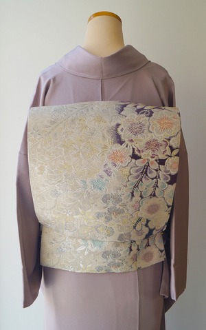 【ふくろ帯】生成色地 辻が花紋 ふくろ帯