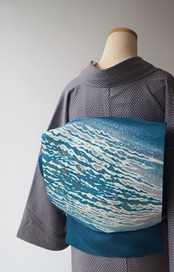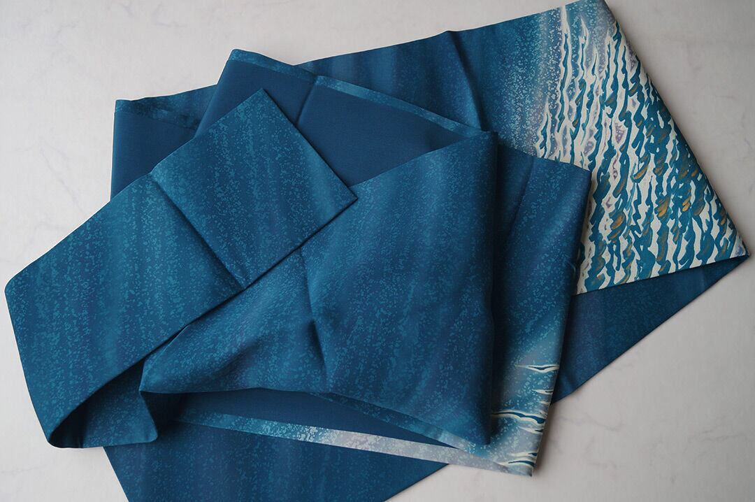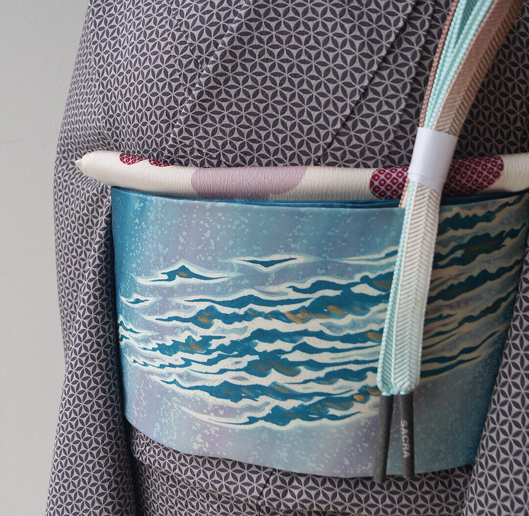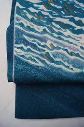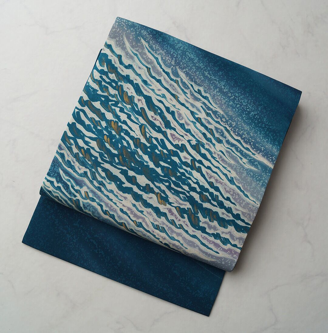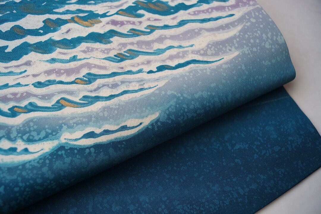 【なごや帯】マリンブルー 波文 塩瀬なごや帯