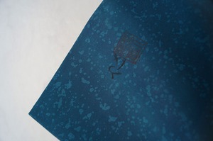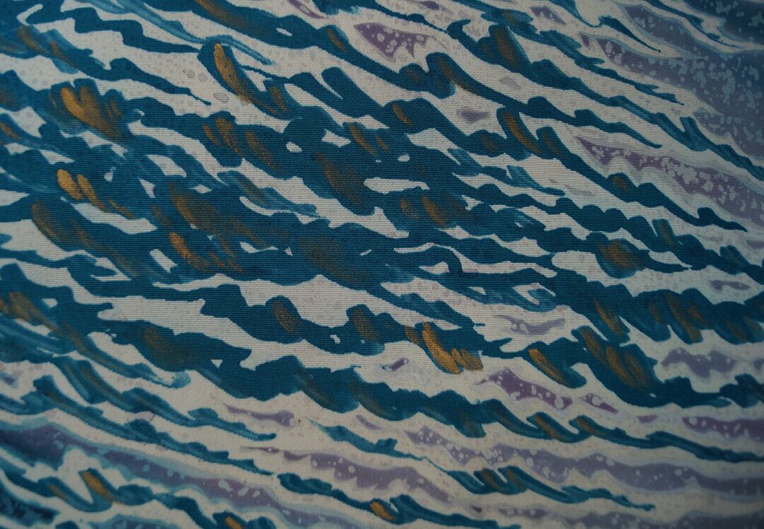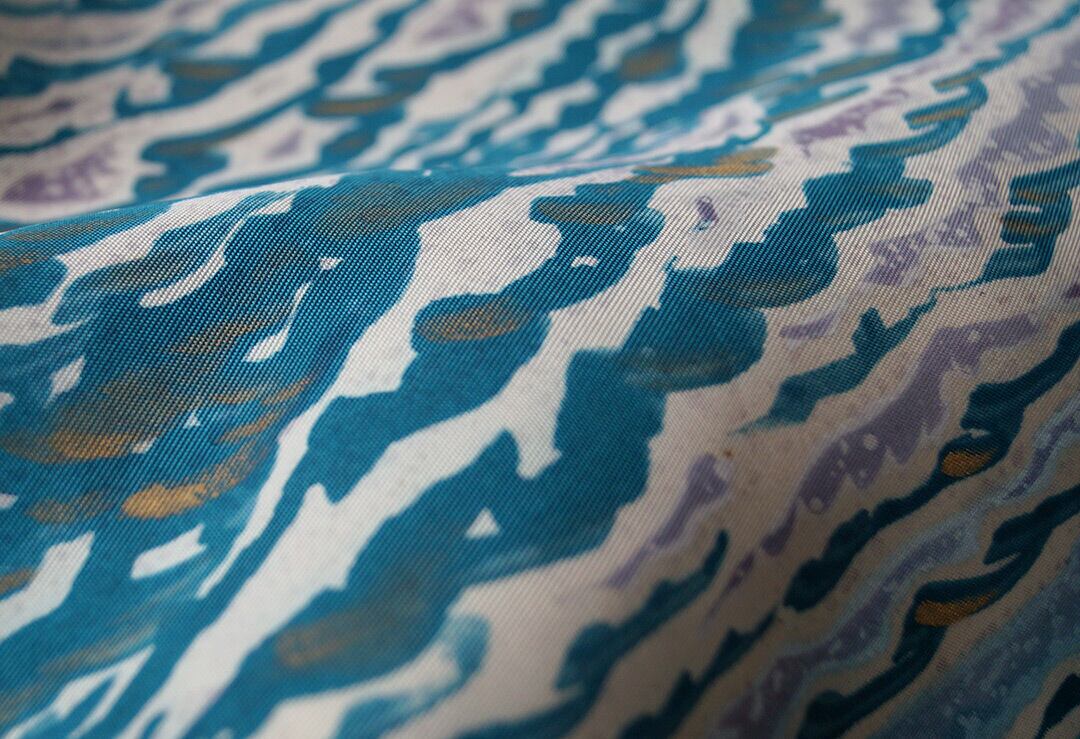 マリンブルー色系に波が描かれた