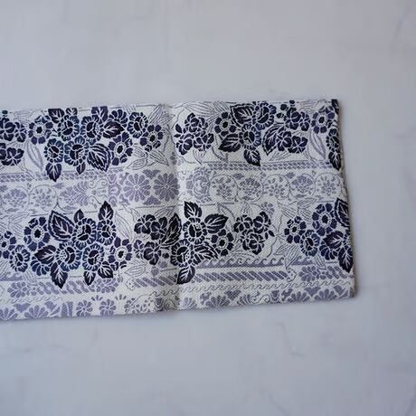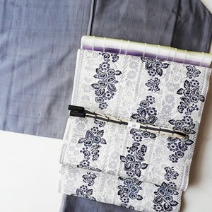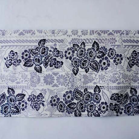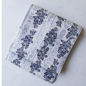 【なごや帯】白地 花縞文 縮緬なごや帯