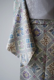 生地には縦長の市松文の地紋が全体に入っており