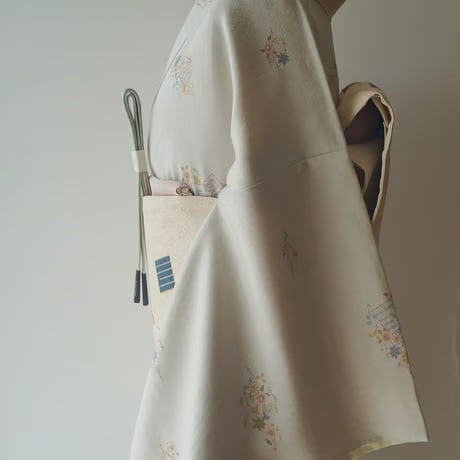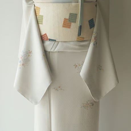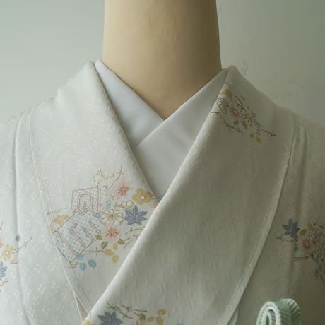 【袷】 白磁色 吹き寄せに源氏香文 飛び柄小紋