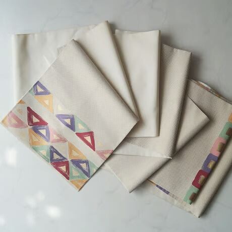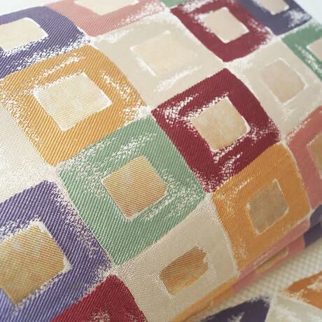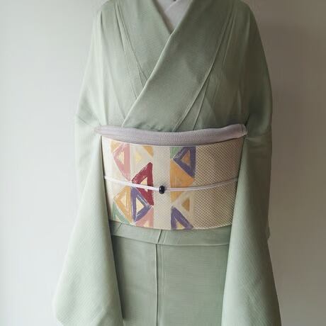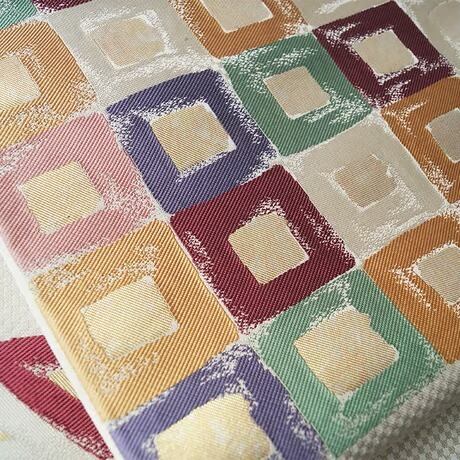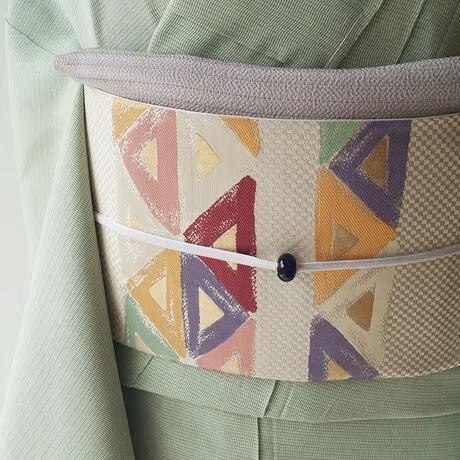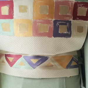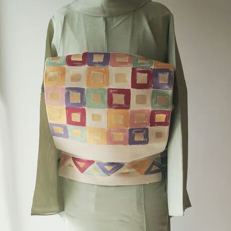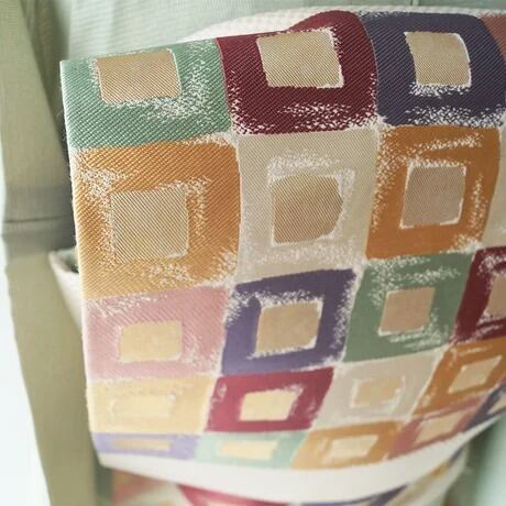 帯地の市松文の光沢と、幾何学文に