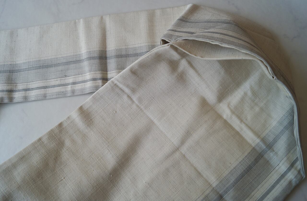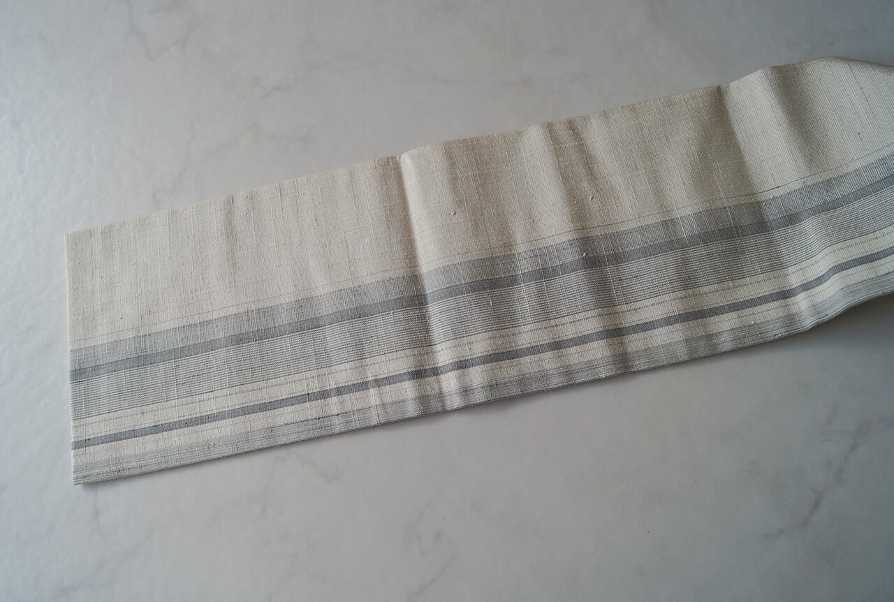 ランダムな縞が淡い白鼠色で織り出され、