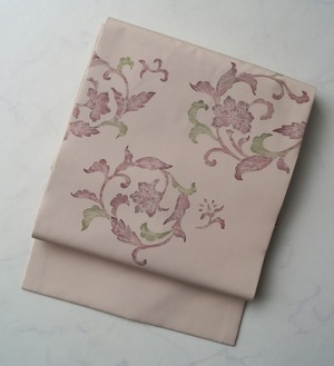 【なごや帯】灰梅色 唐花文 塩瀬なごや帯