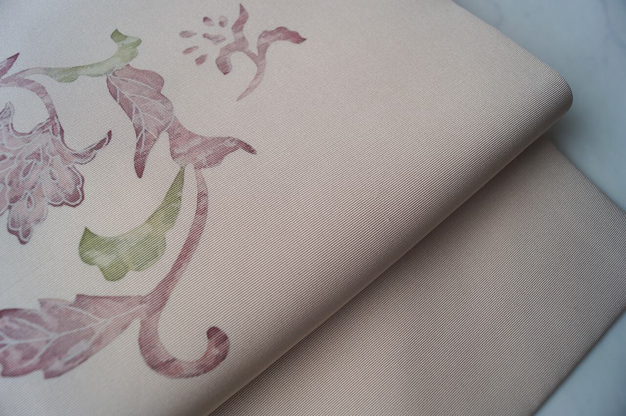 サラリとした塩瀬地、灰梅色地です。
