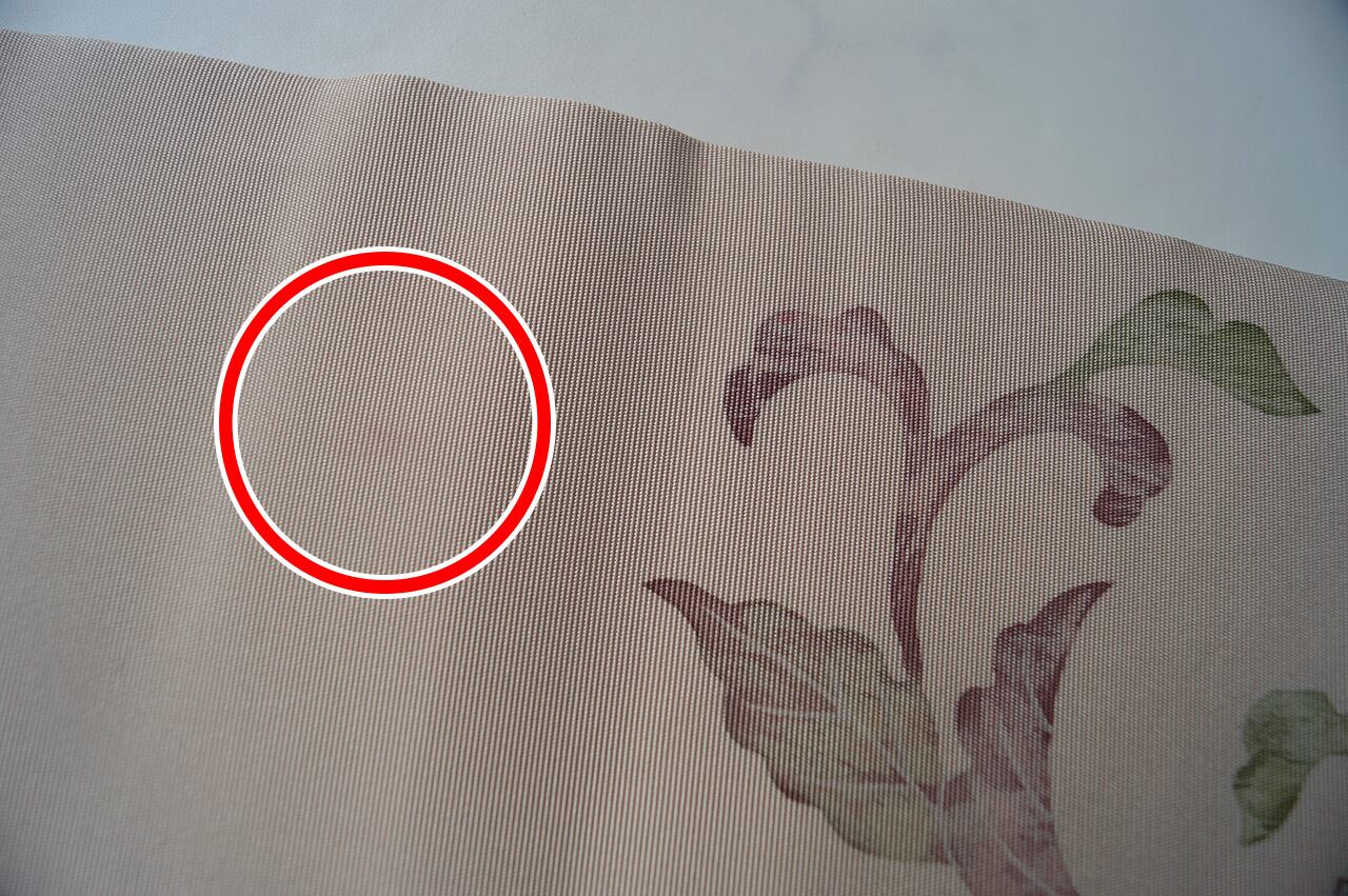 ・て先、胴前柄の横に薄染み(どちら巻きでも染みあり)