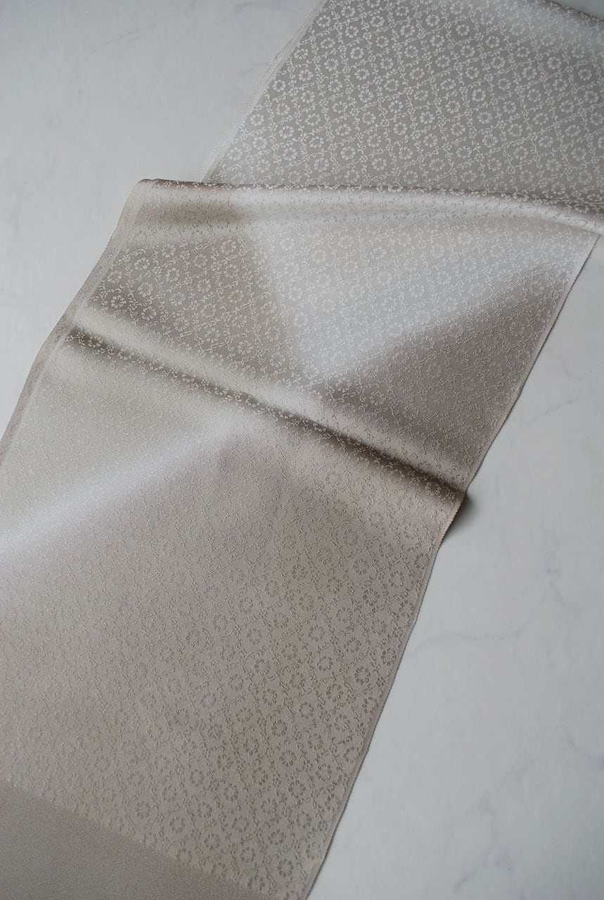 華唐草の斜め格子文の中央に華が一つ配された地紋の帯揚げ。