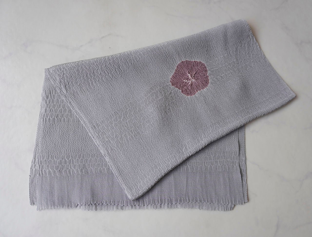 【衿秀・帯揚げ】白鼠×浅蘇芳 二段地紋 梅花飛び絞り 帯揚げ250912⑰