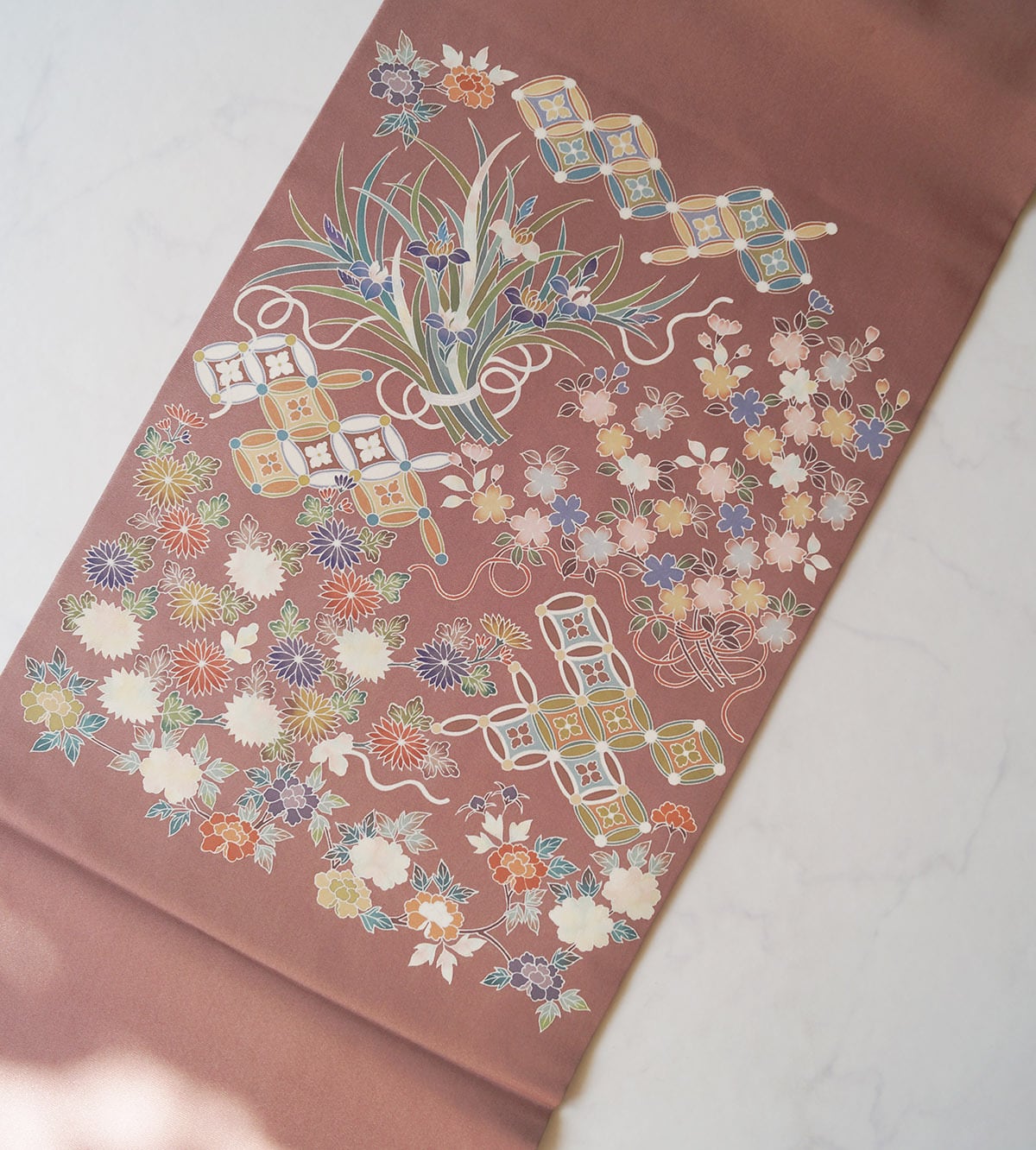お柄は桜、牡丹、菊、菖蒲が一面に散りばめられ