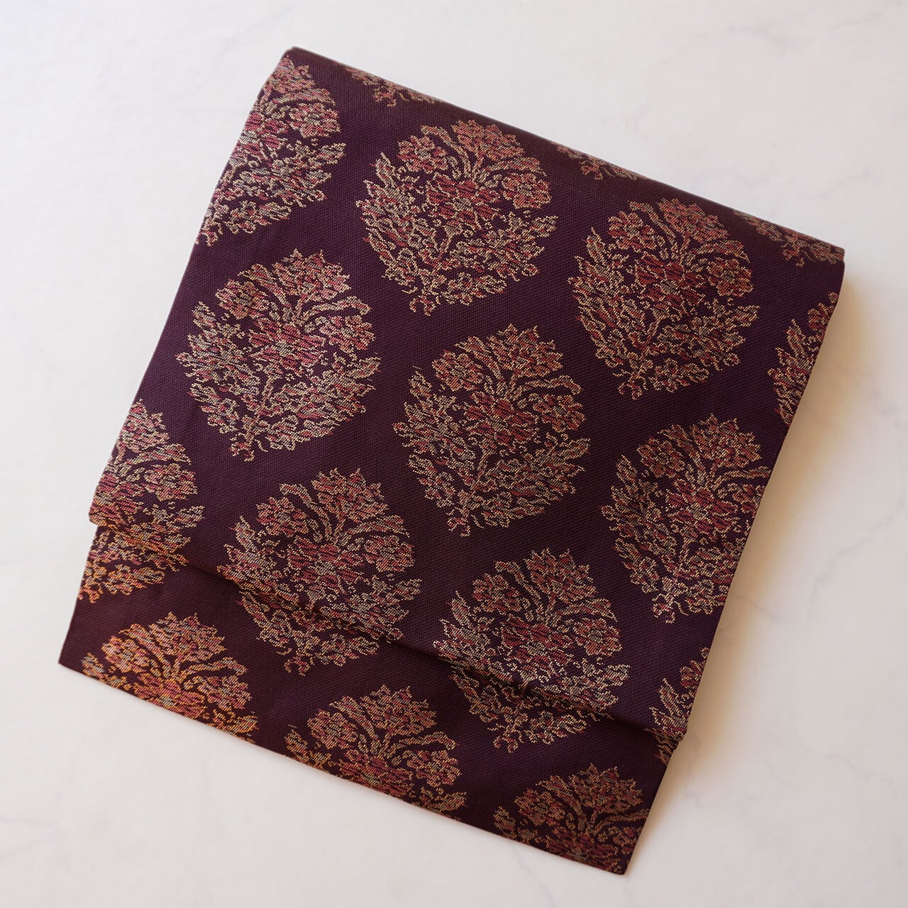 【なごや帯】葡萄茶色地 花菱文 なごや帯
