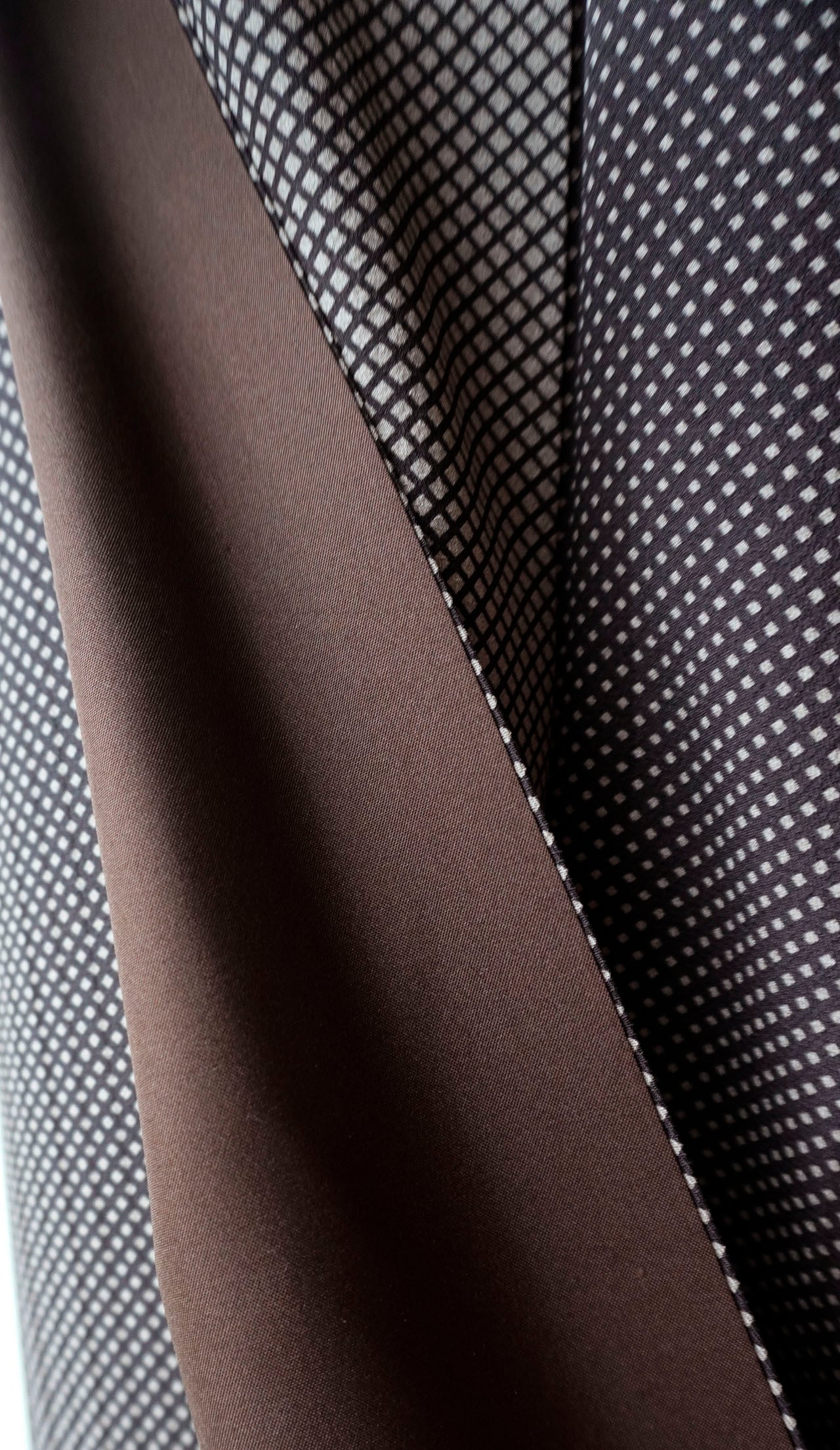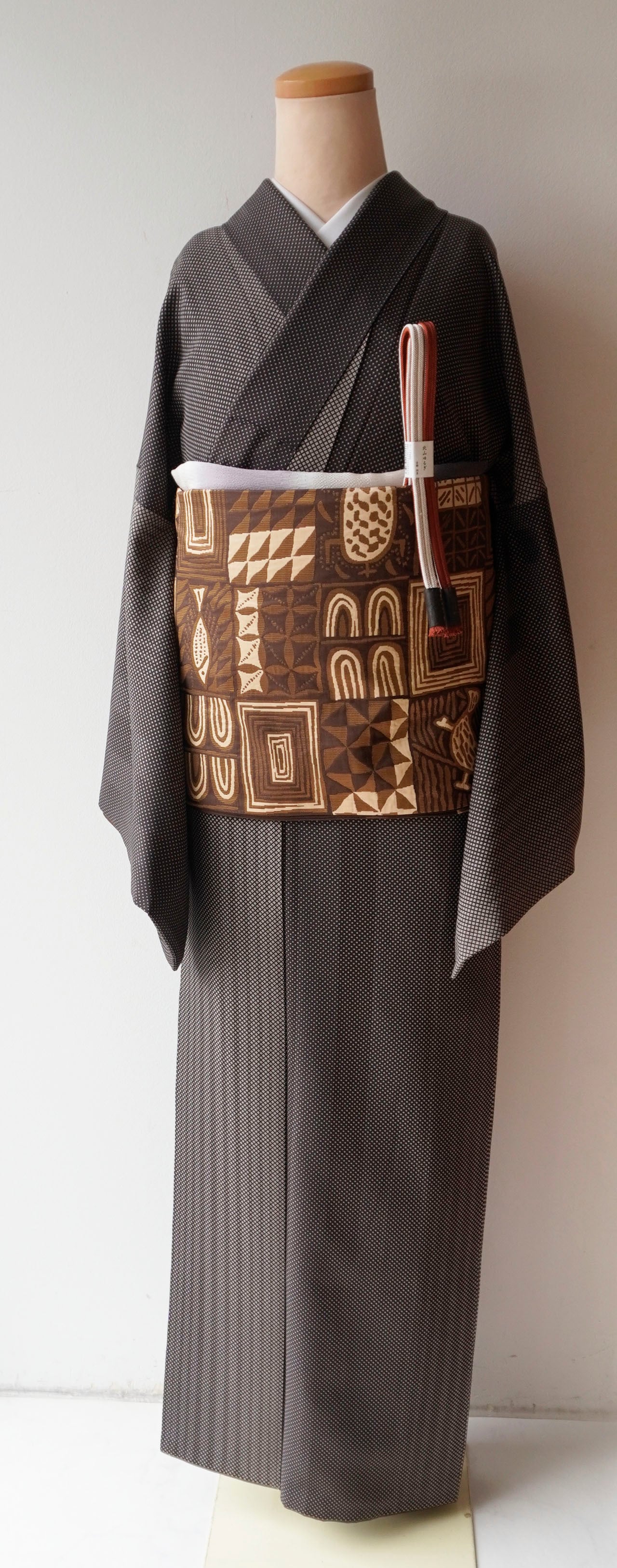 焦茶のラインで斜め格子が染められた