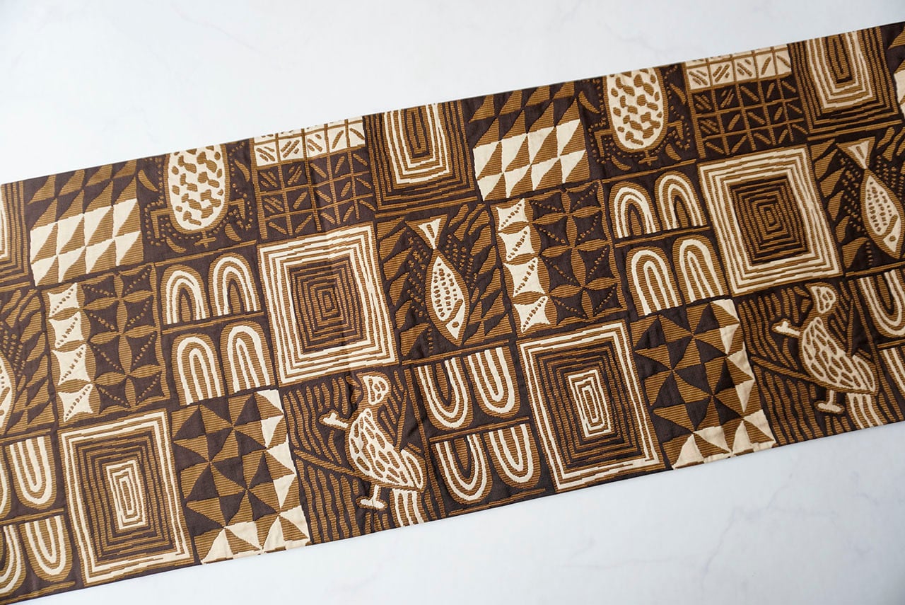 【ふくろ帯】木屋太謹製 焦茶地 コプト格子文 ふくろ帯