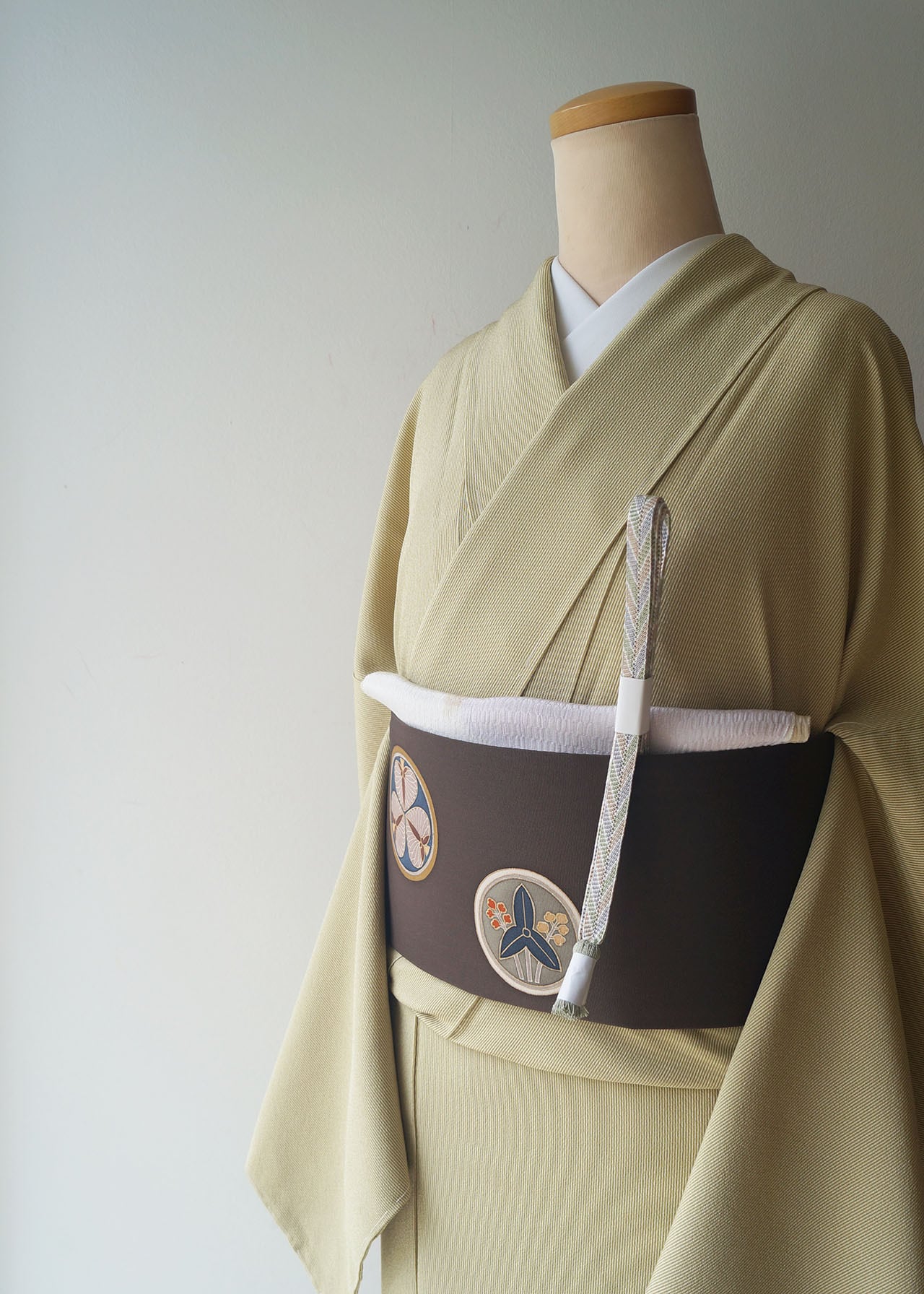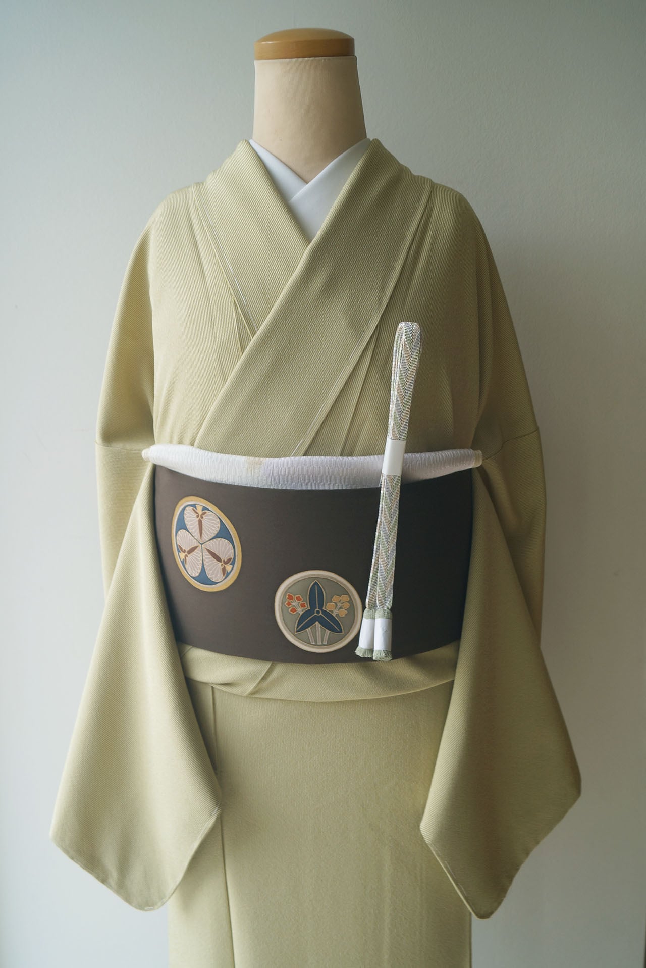 【袷】青朽葉色×象牙色 万筋 江戸小紋