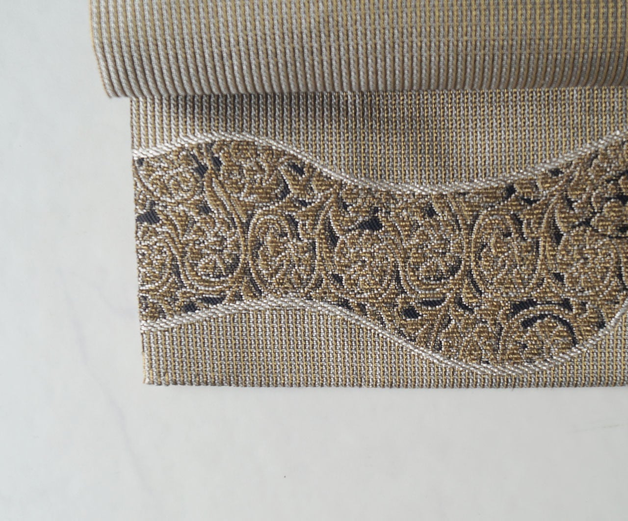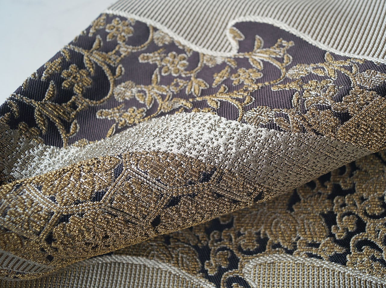 金華山織は緯糸に金糸・銀糸を織り込んで
