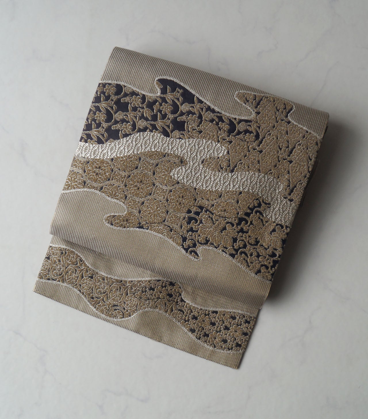 道長取りに華やかにお柄が織り出された