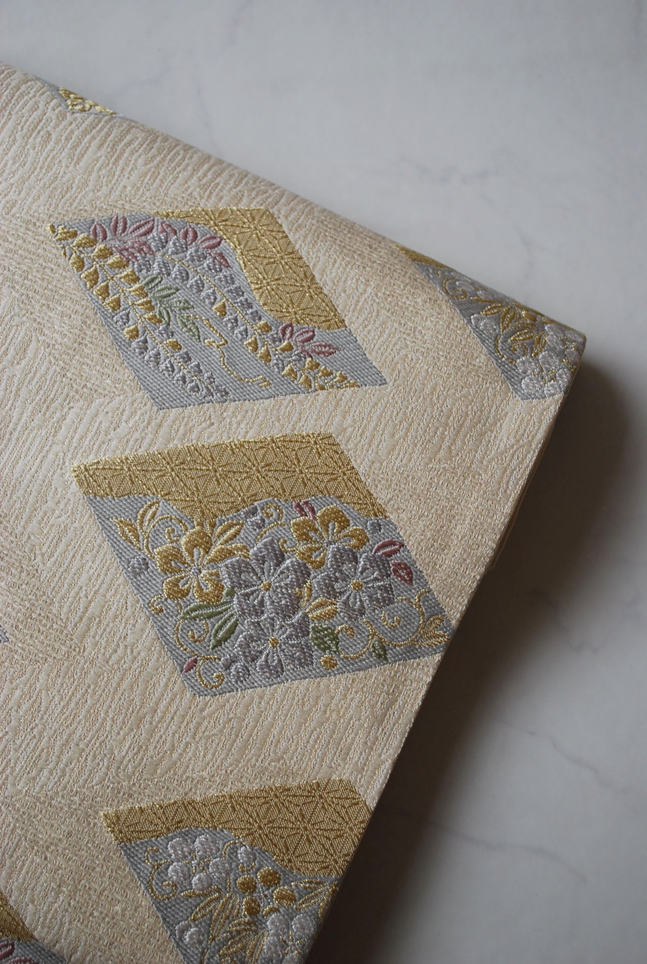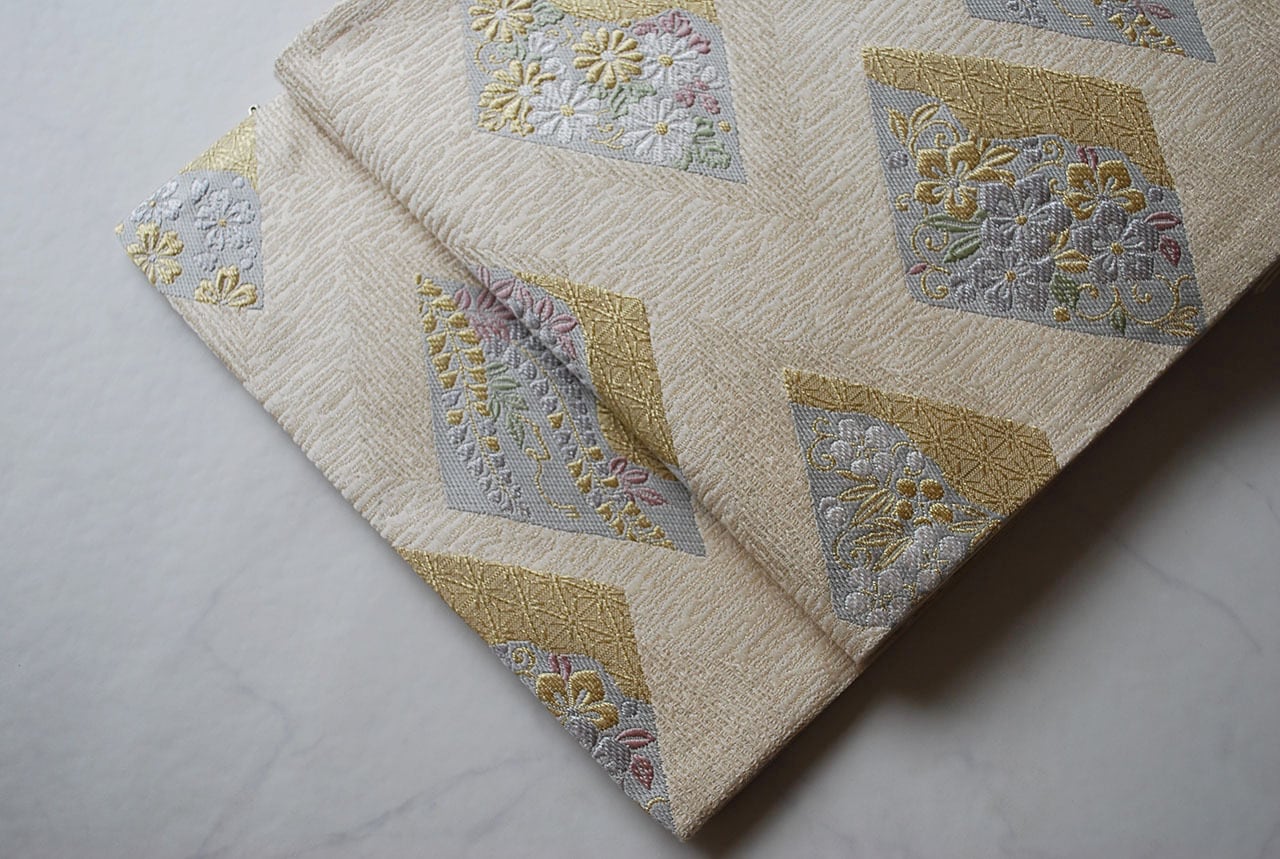 お柄は菱文のなかに、藤や菊、梅、桔梗、桜などの