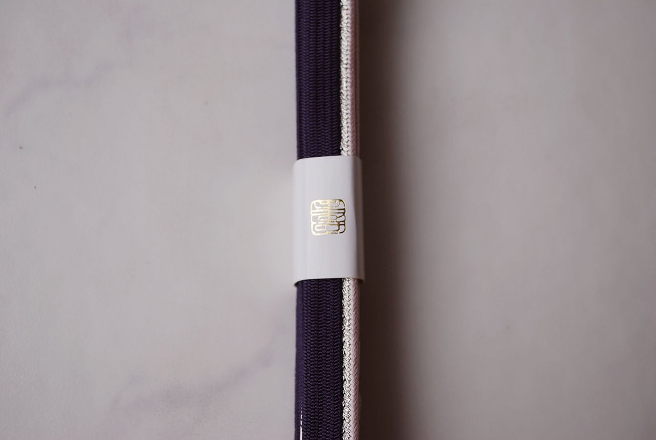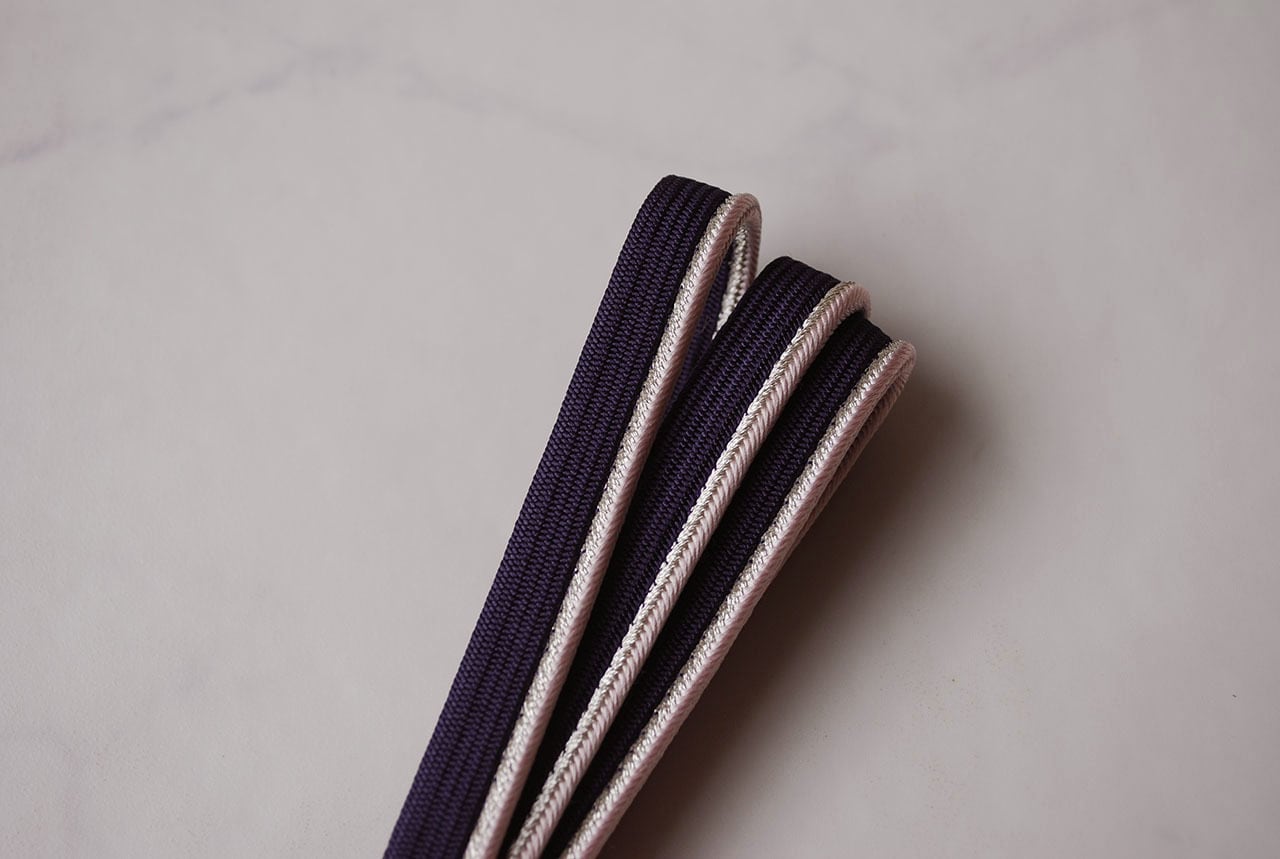 片側に銀糸と紫のアクセント