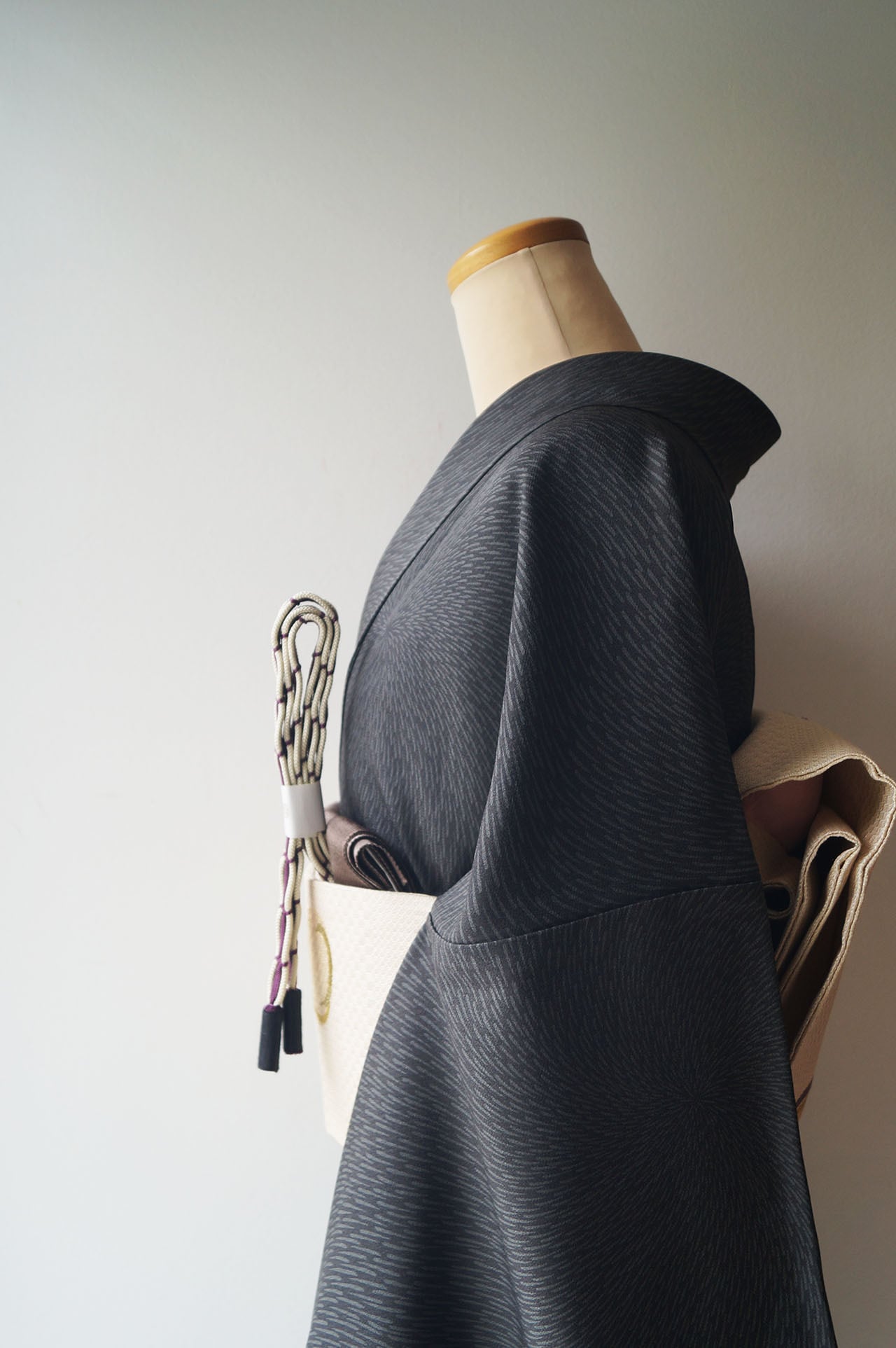 【袷】トールサイズ 羊羹色地 むじな菊 小紋