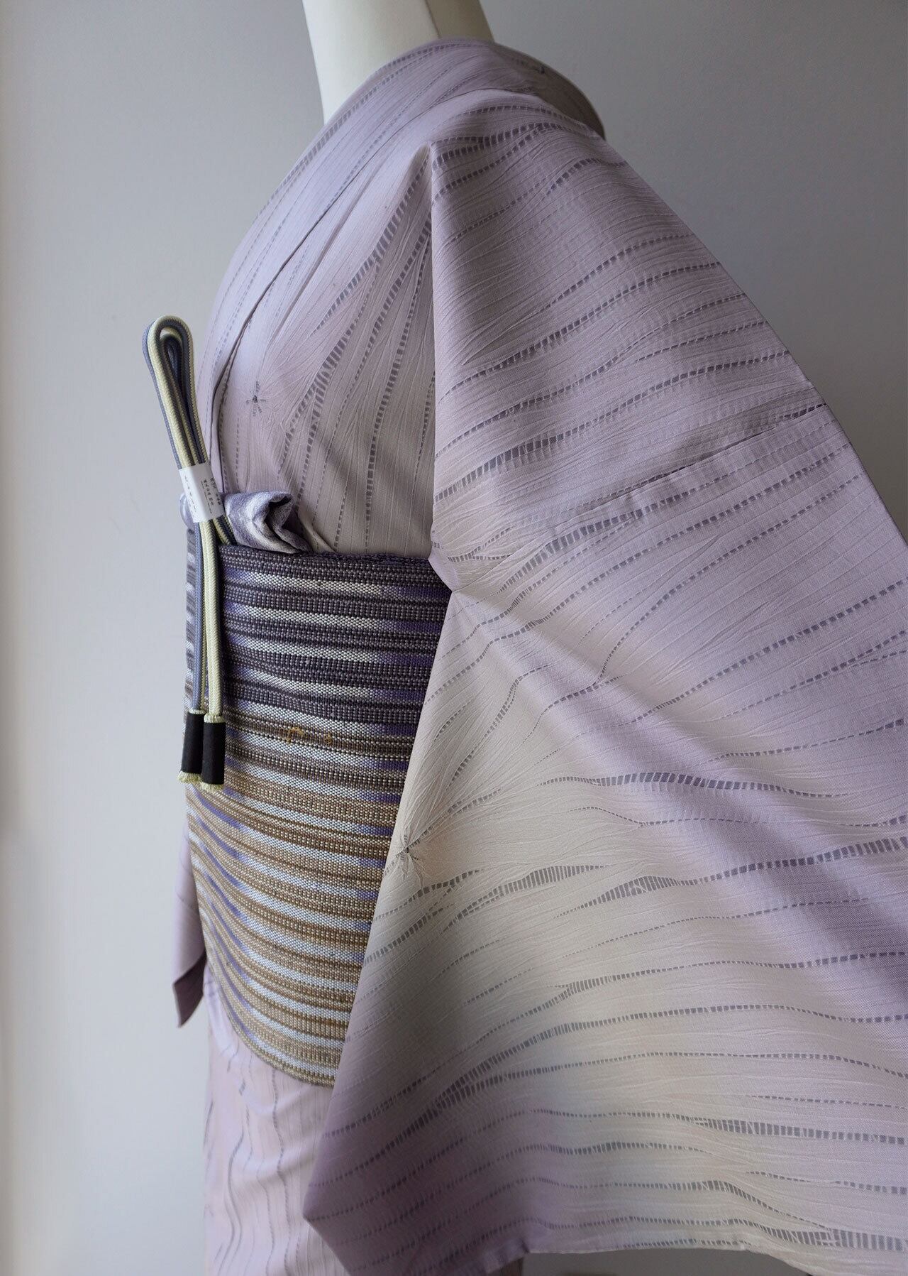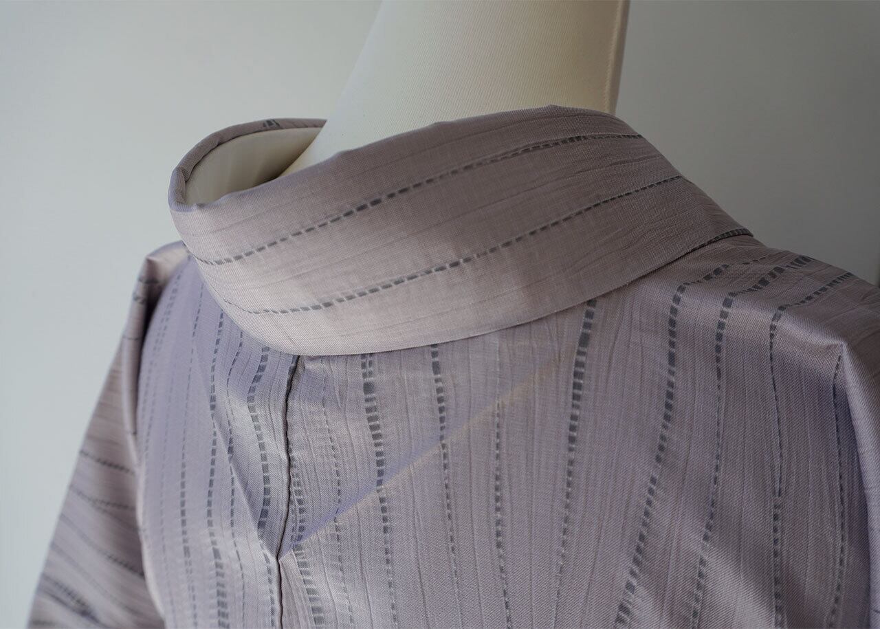 全体的に入った縫い絞りの縦の模様の中に