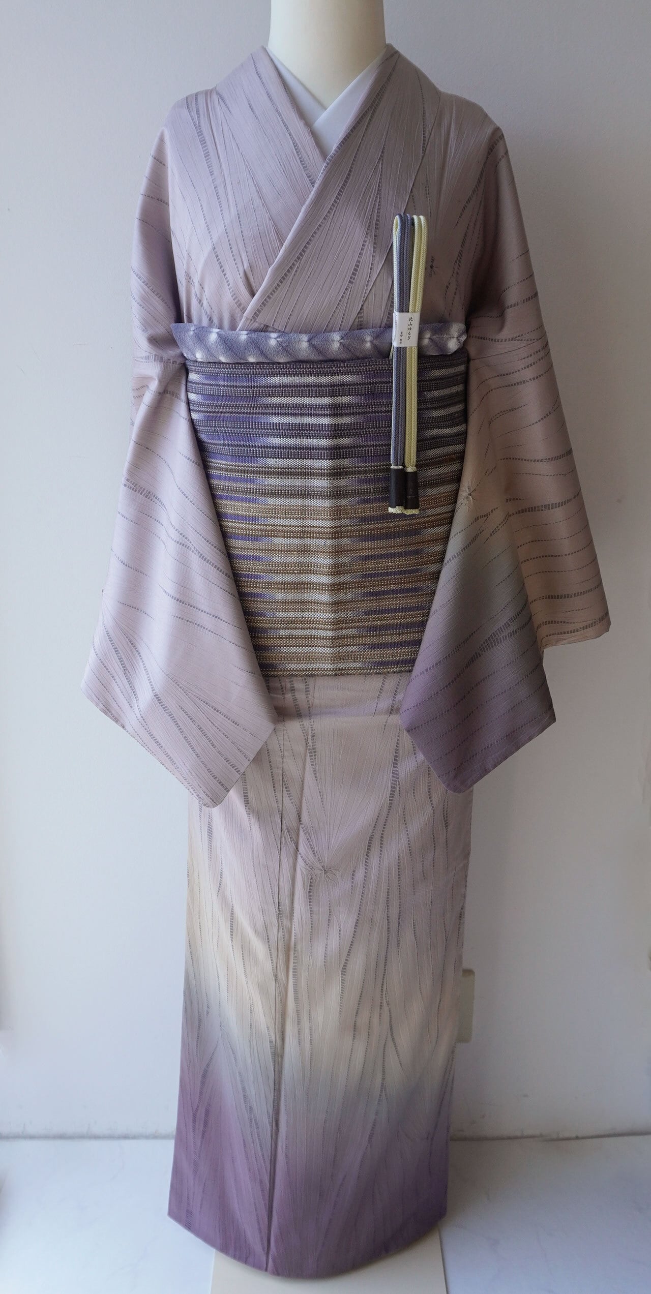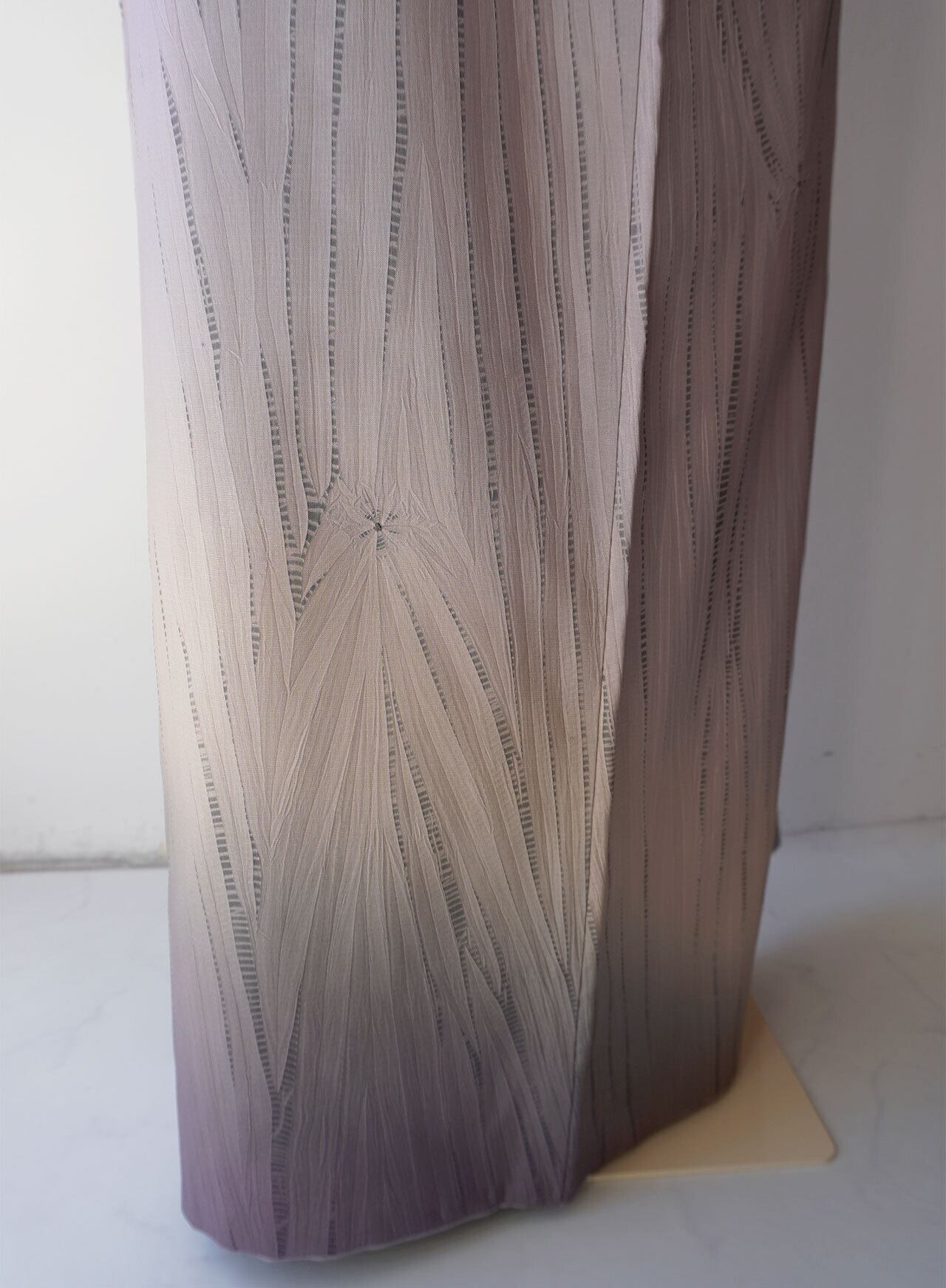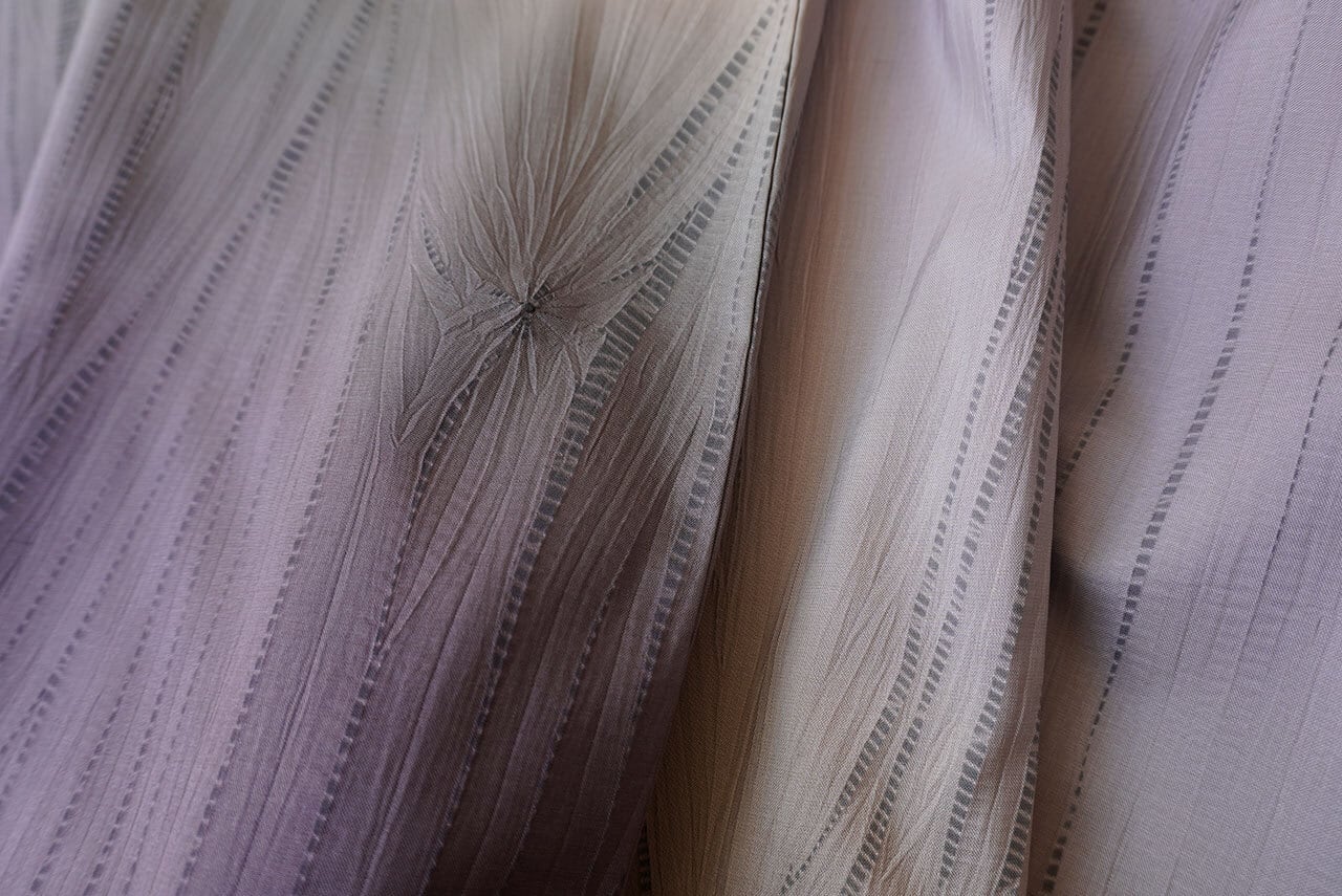 淡い浅紫から二藍色の暈しの縫い絞り、
