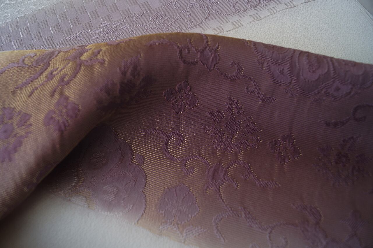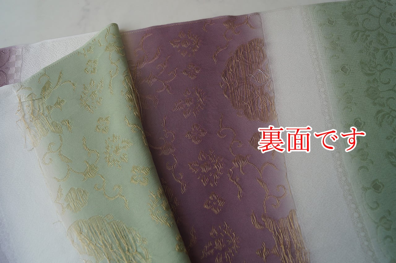 淡い暈かしに金糸が織り込まれています。