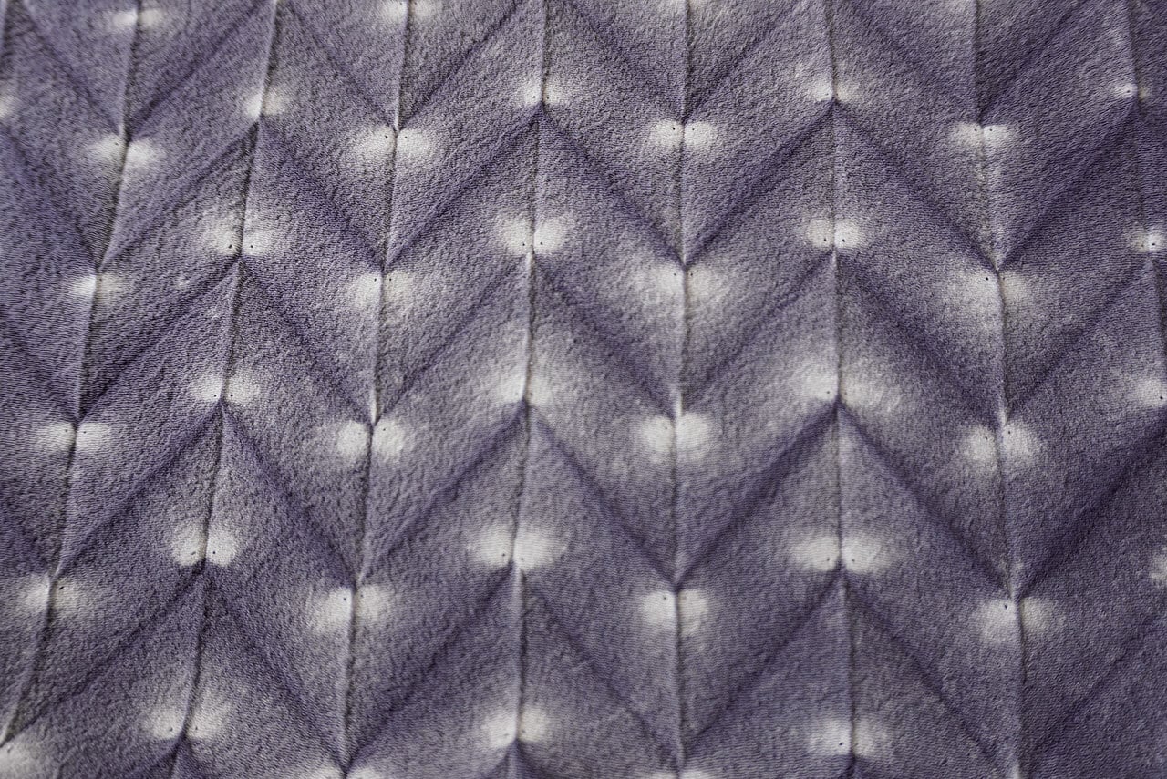 板締め絞りによるモダンな染め柄が