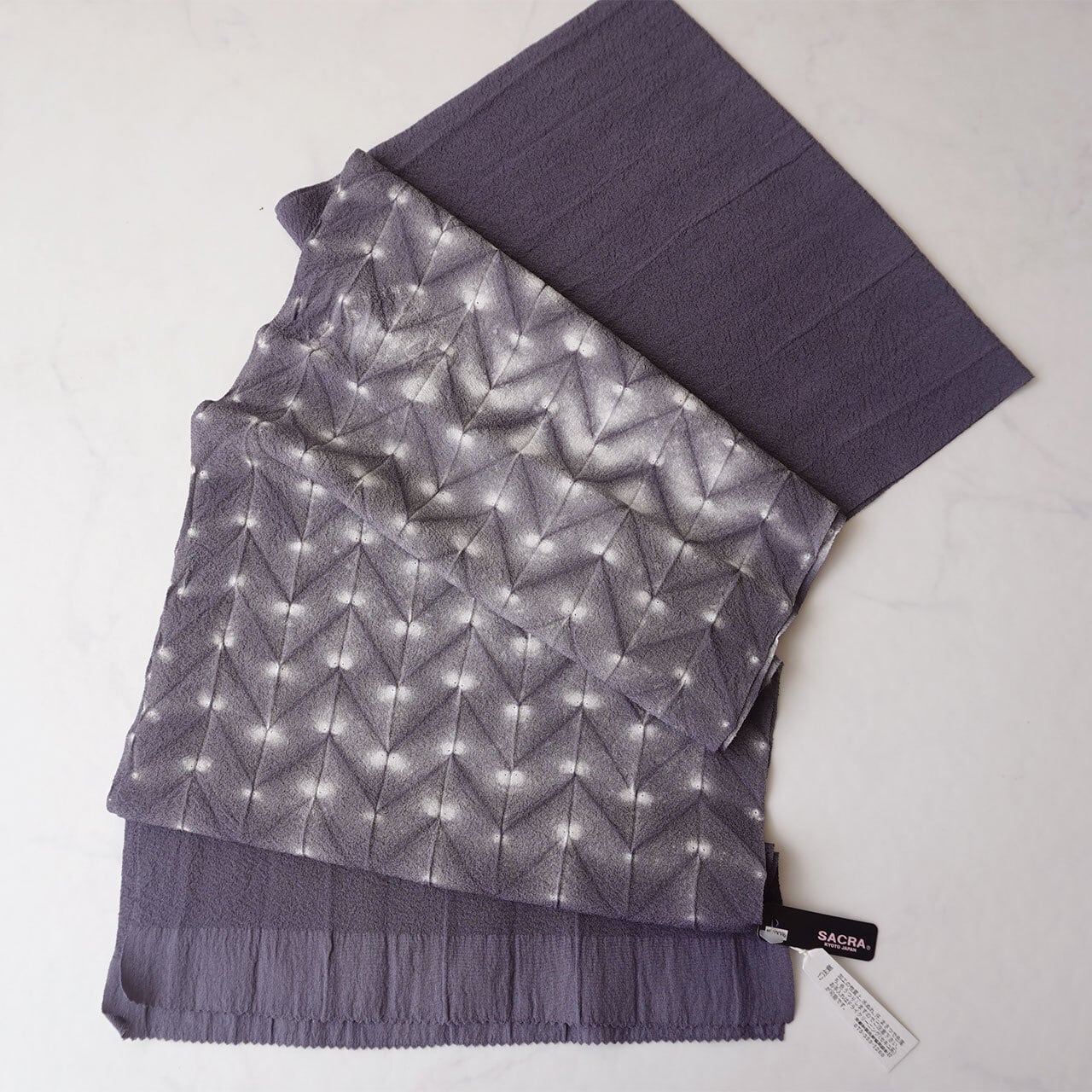 生地に単色で板締め絞りが施されています。