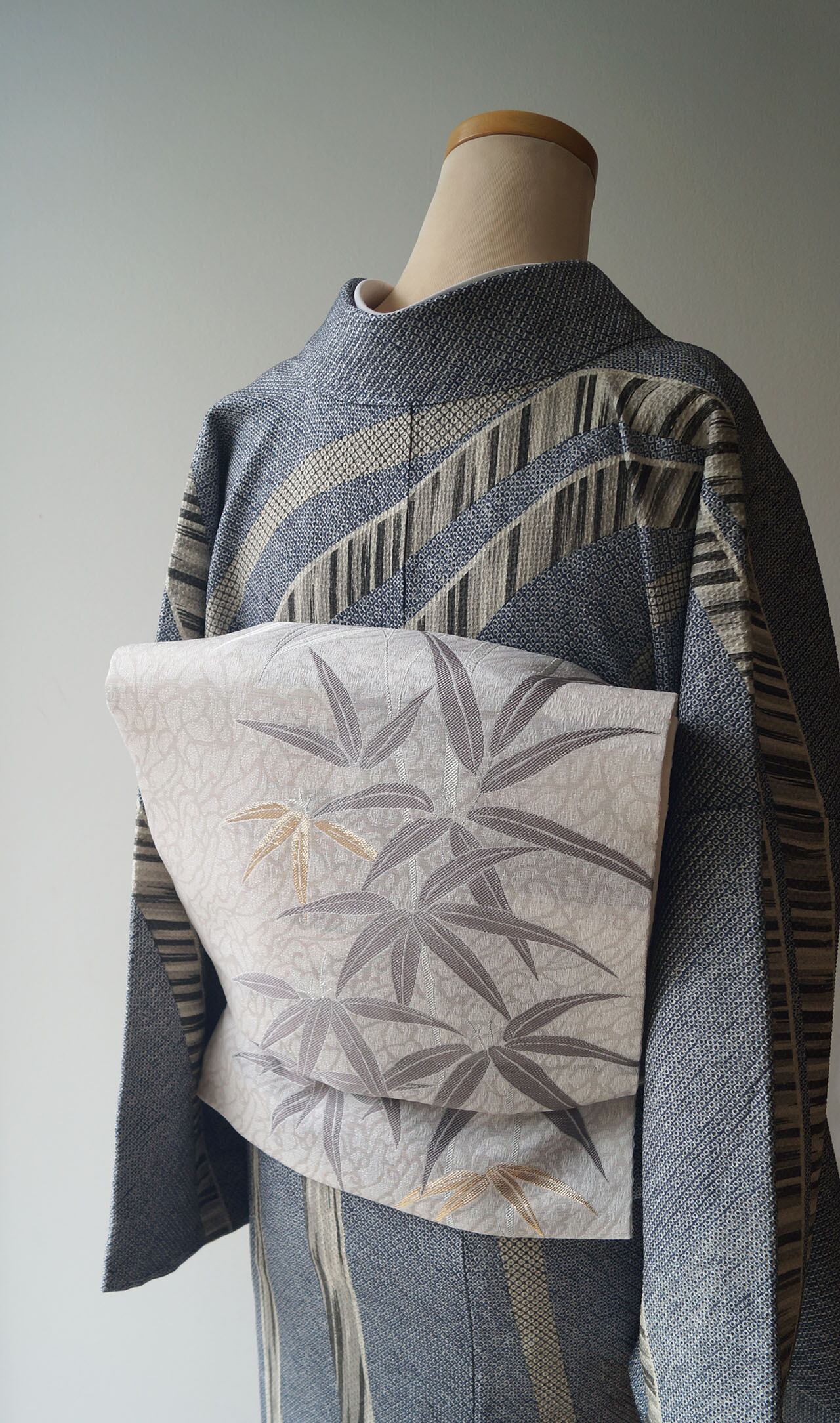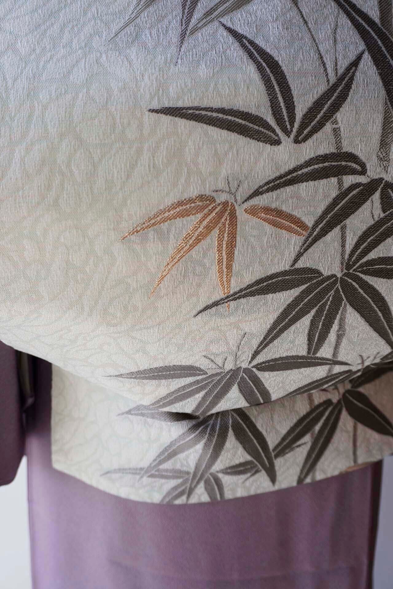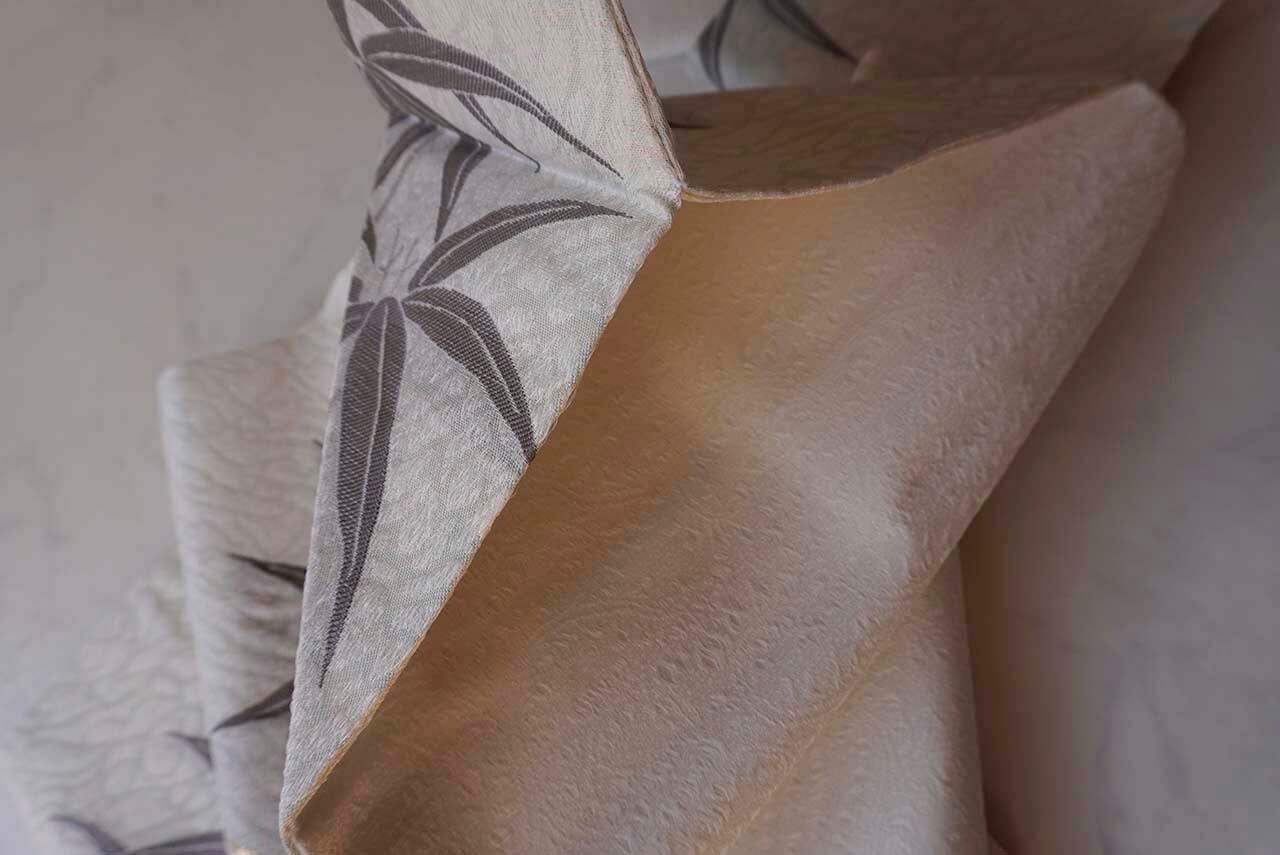 【なごや帯】千地泰弘作 砂色地 笹文 なごや帯