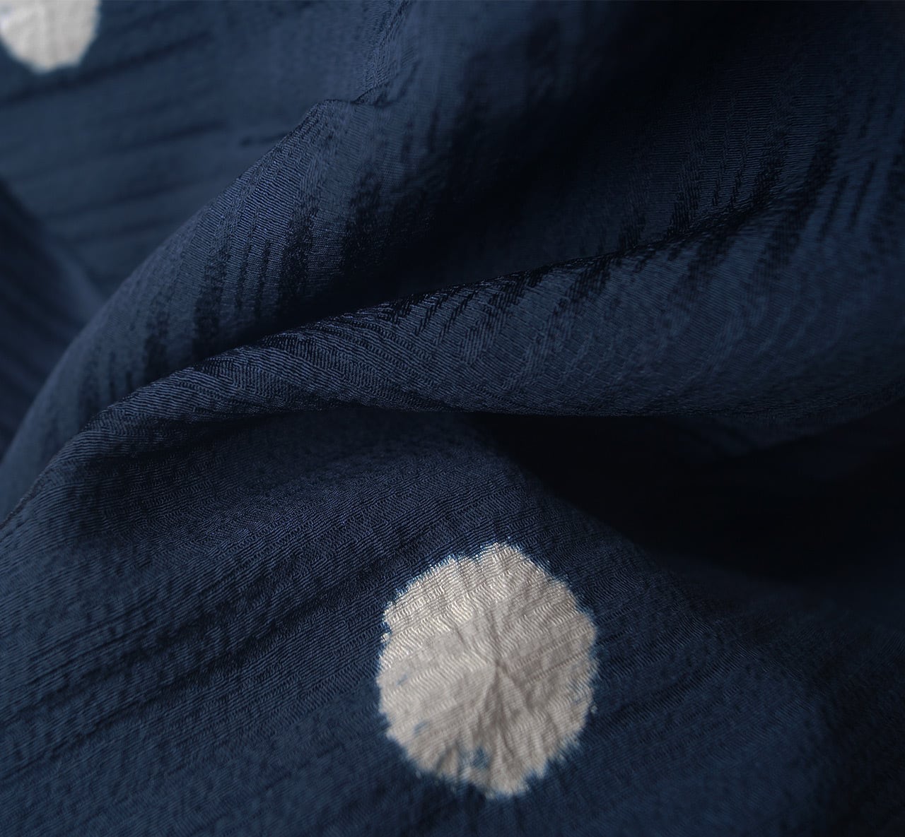 鉄紺色に崩しに丸絞り柄の