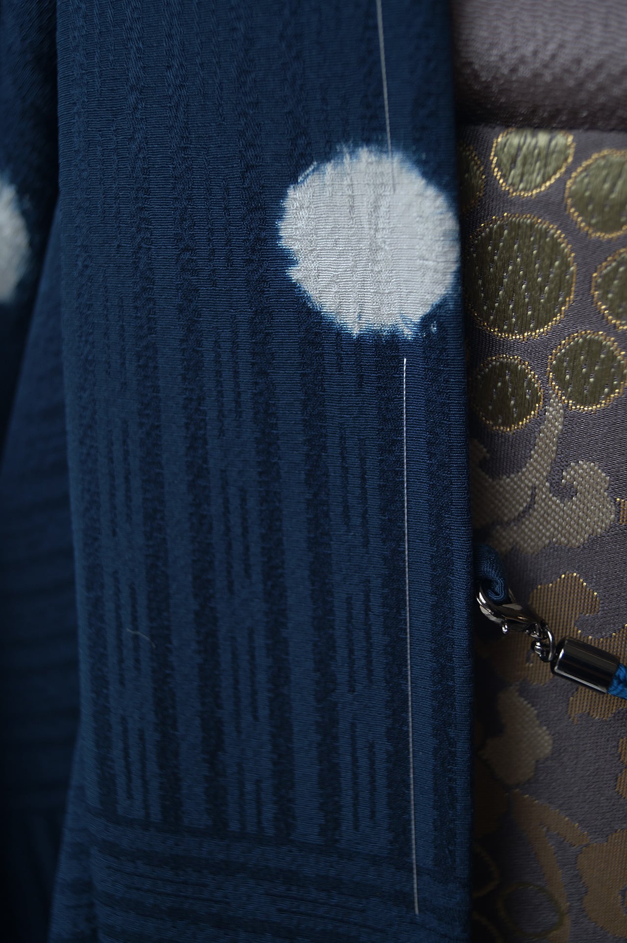 の柄となった地紋に映える丸い絞りは