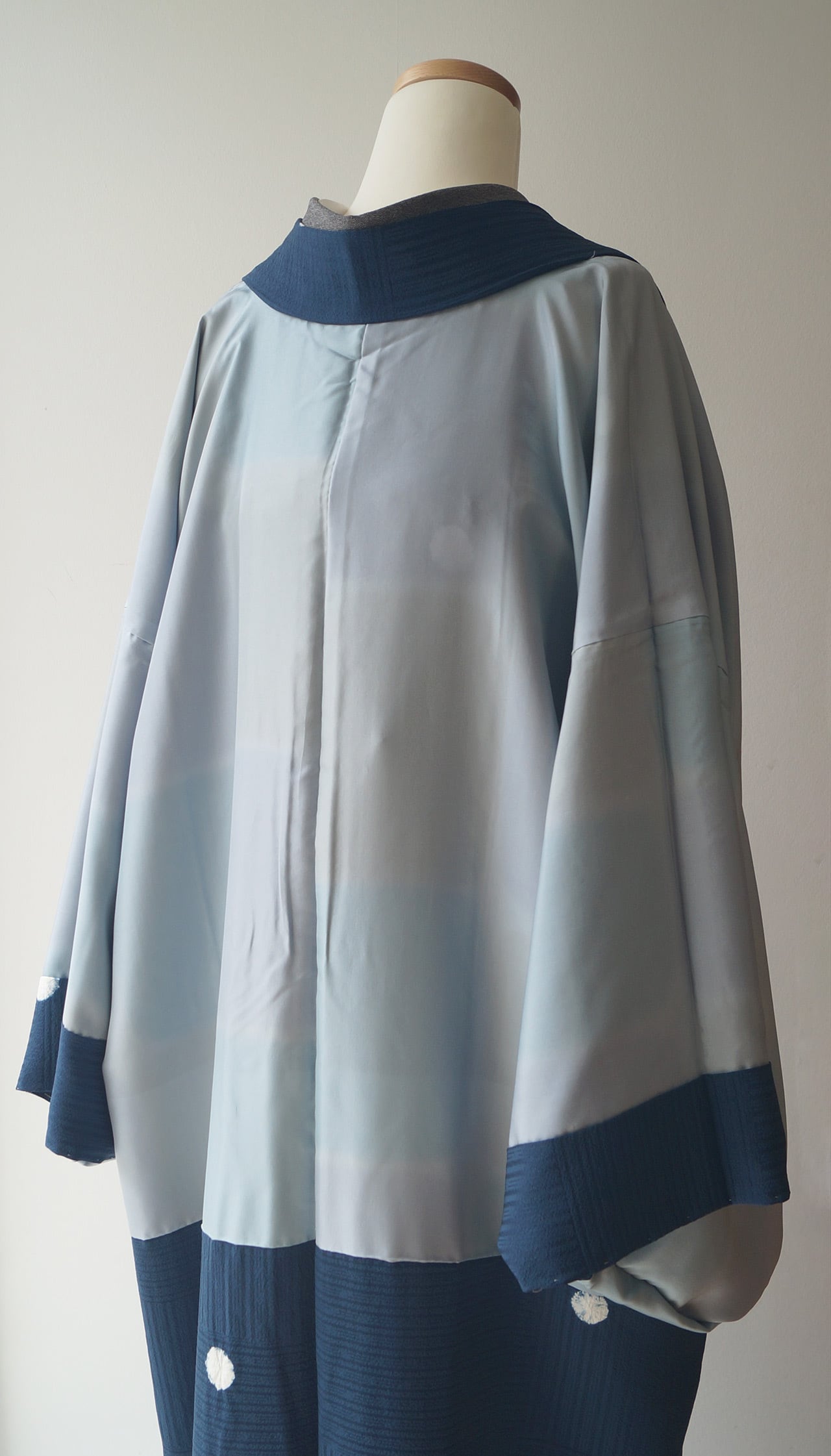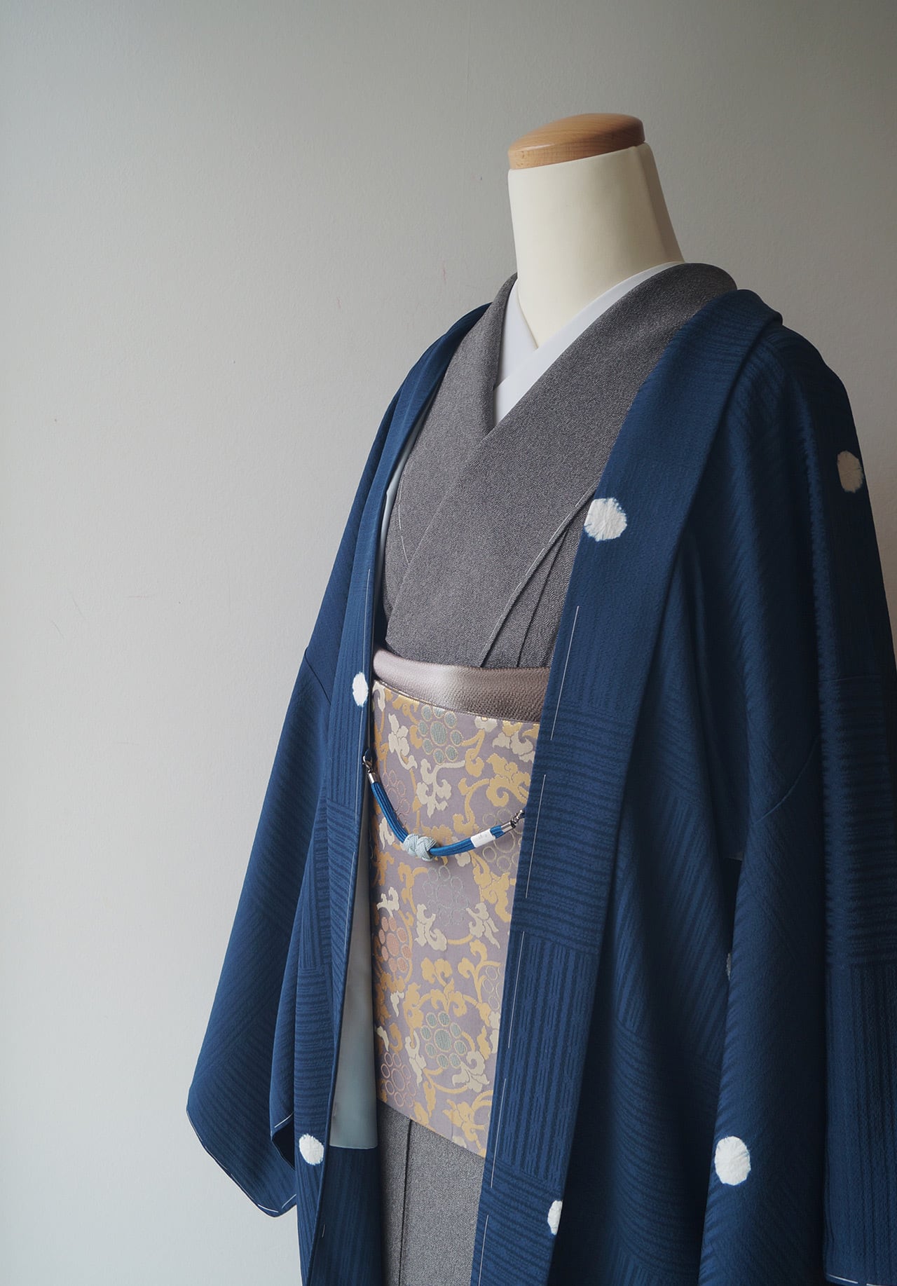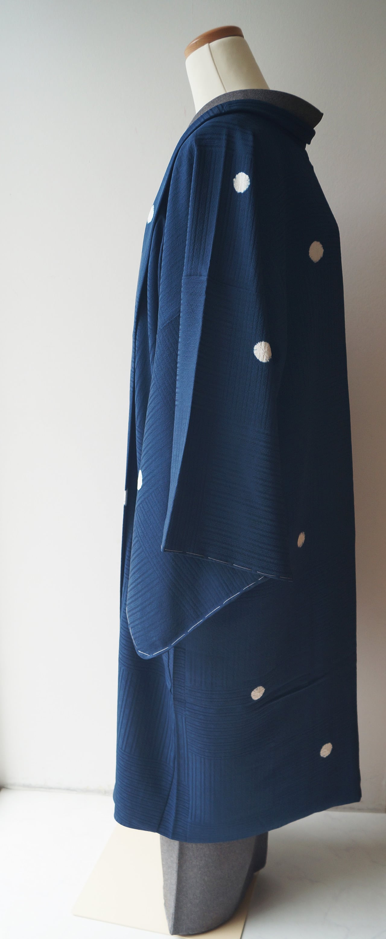 光沢感がある鉄紺色の地色に丸絞りの