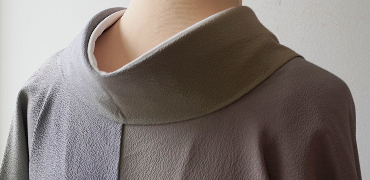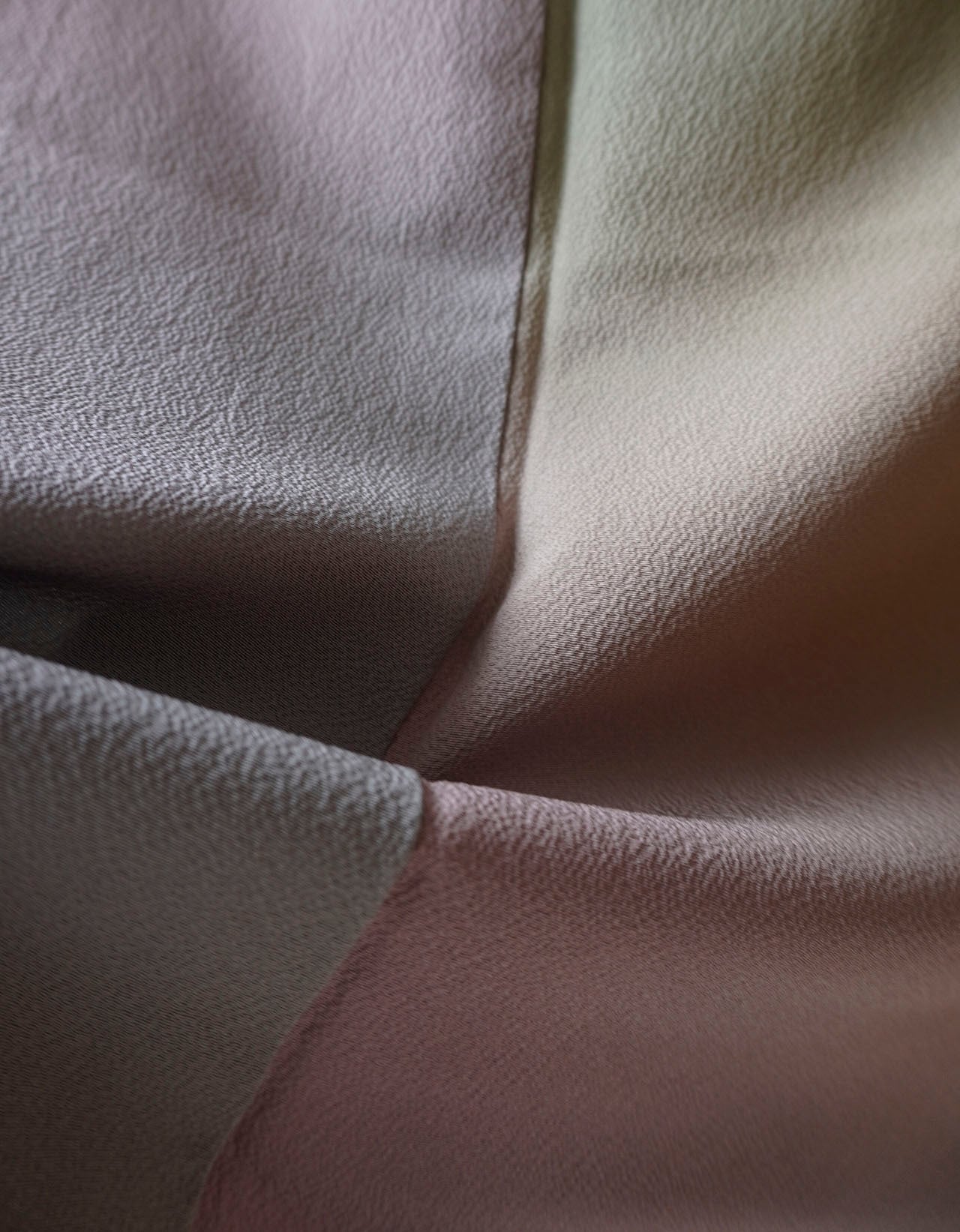 光の加減で浮かび上がる縮緬地ならではのシボの凹凸が
