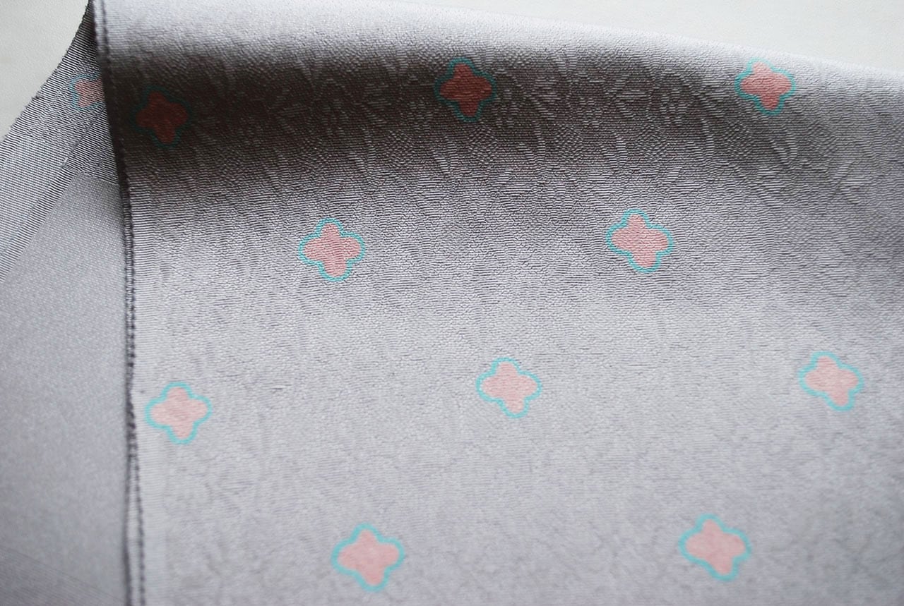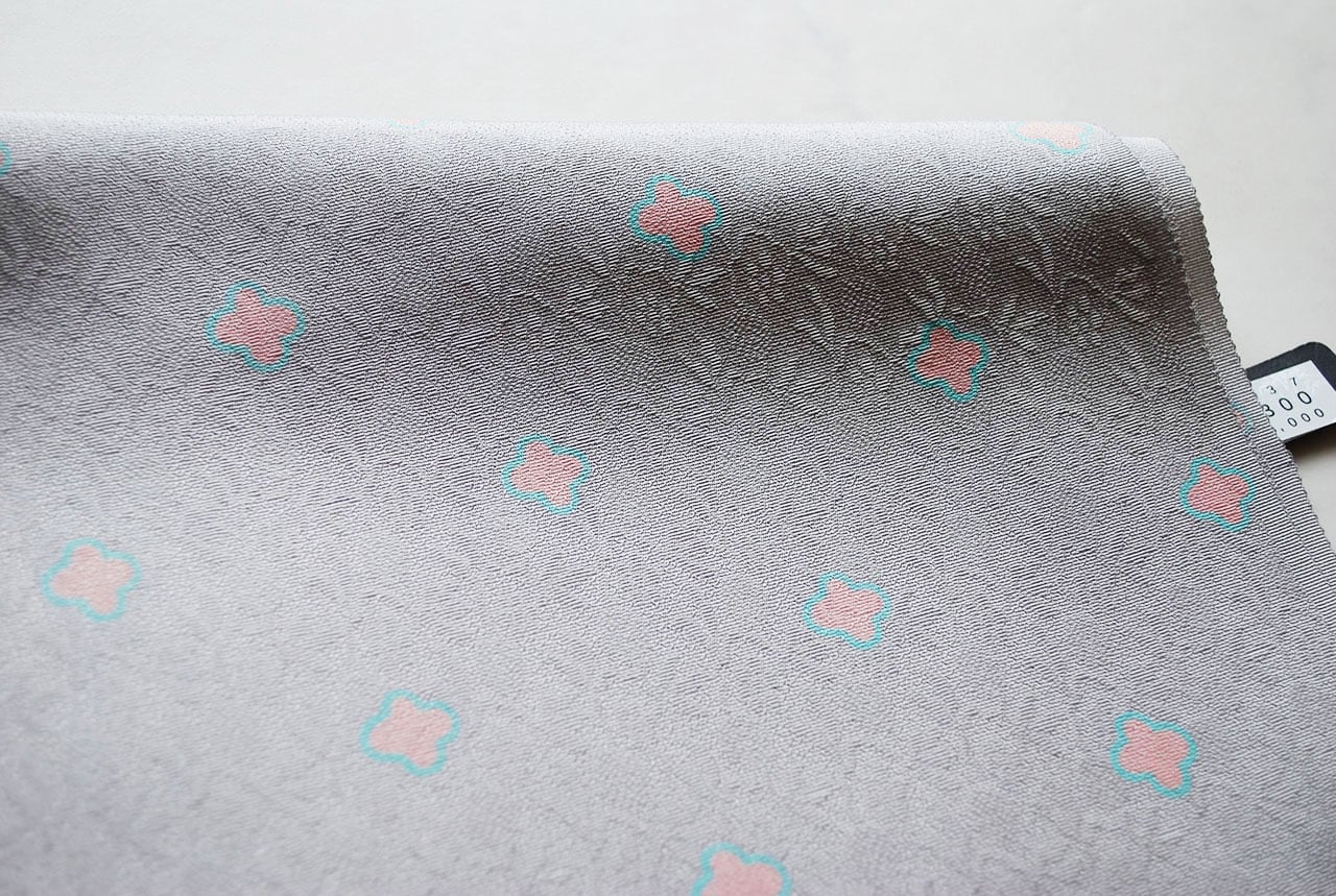 地色に淡い水色に近い藤色、十字の中心にやさしいピンク