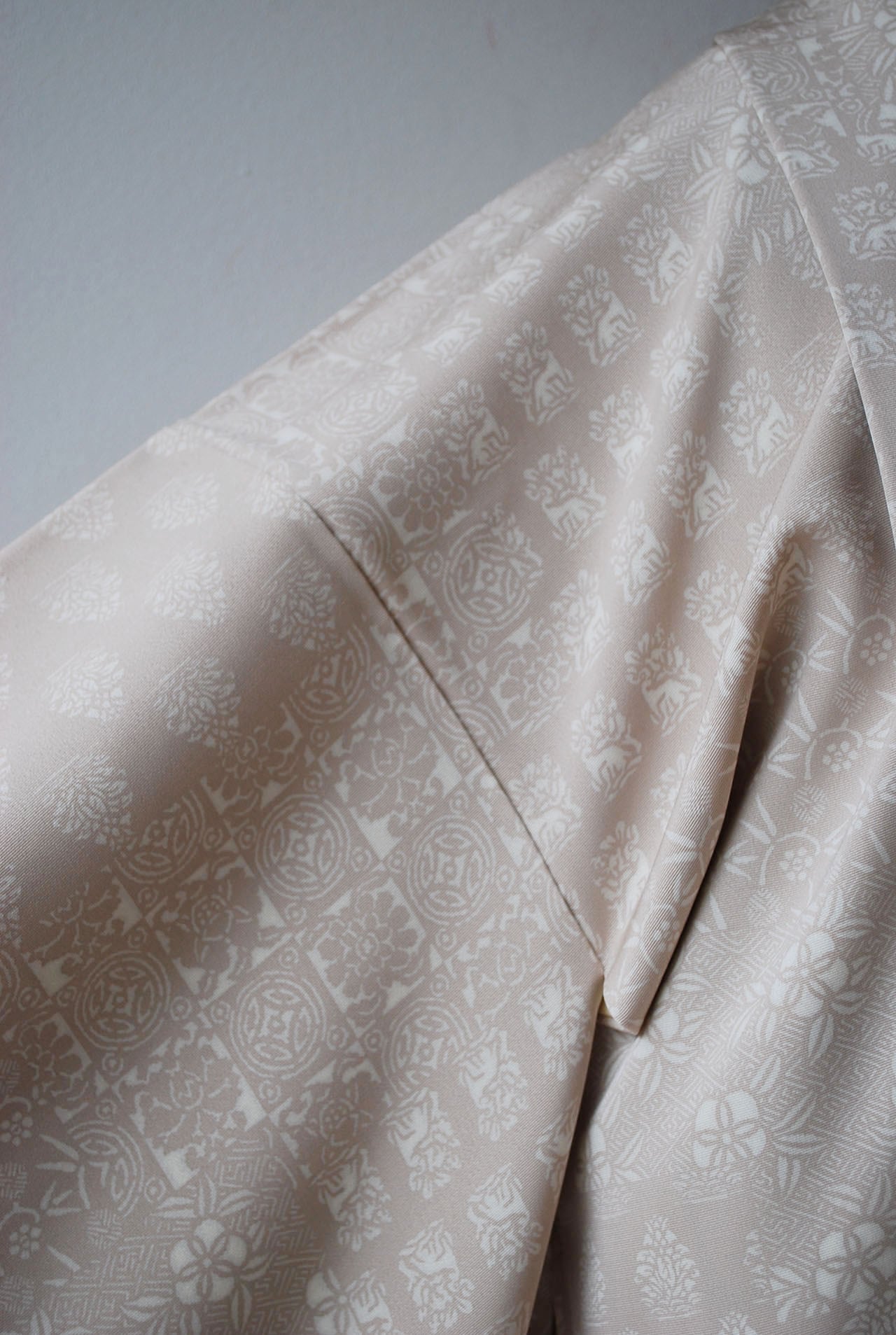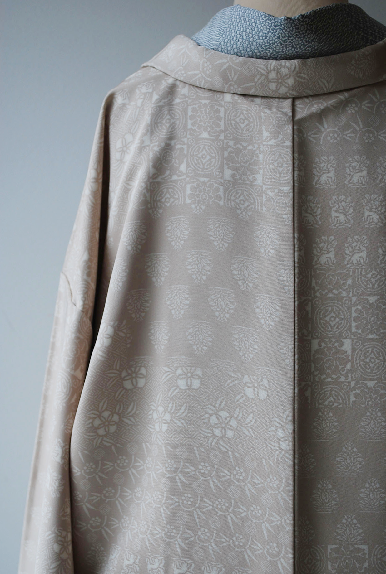 【袷羽織】亜麻色地 名物裂型染 袷羽織