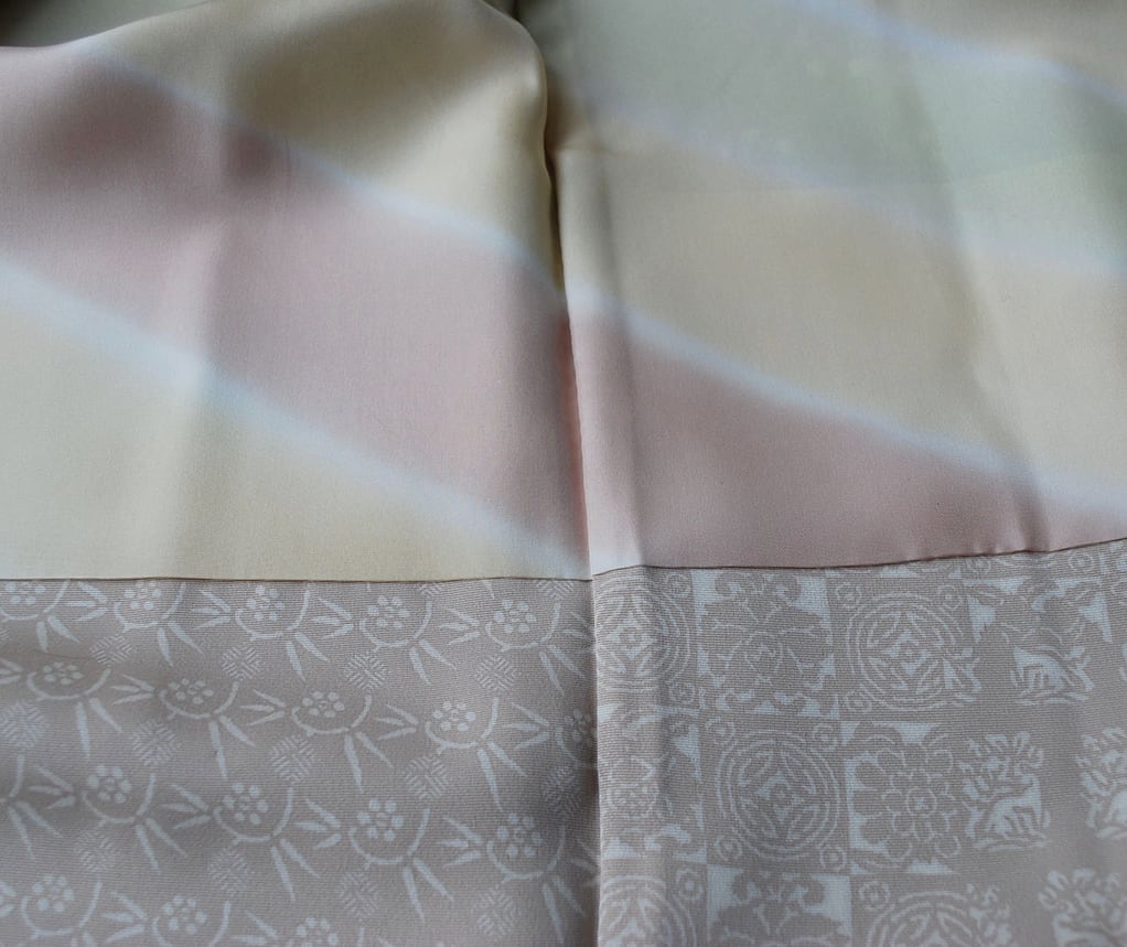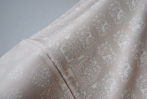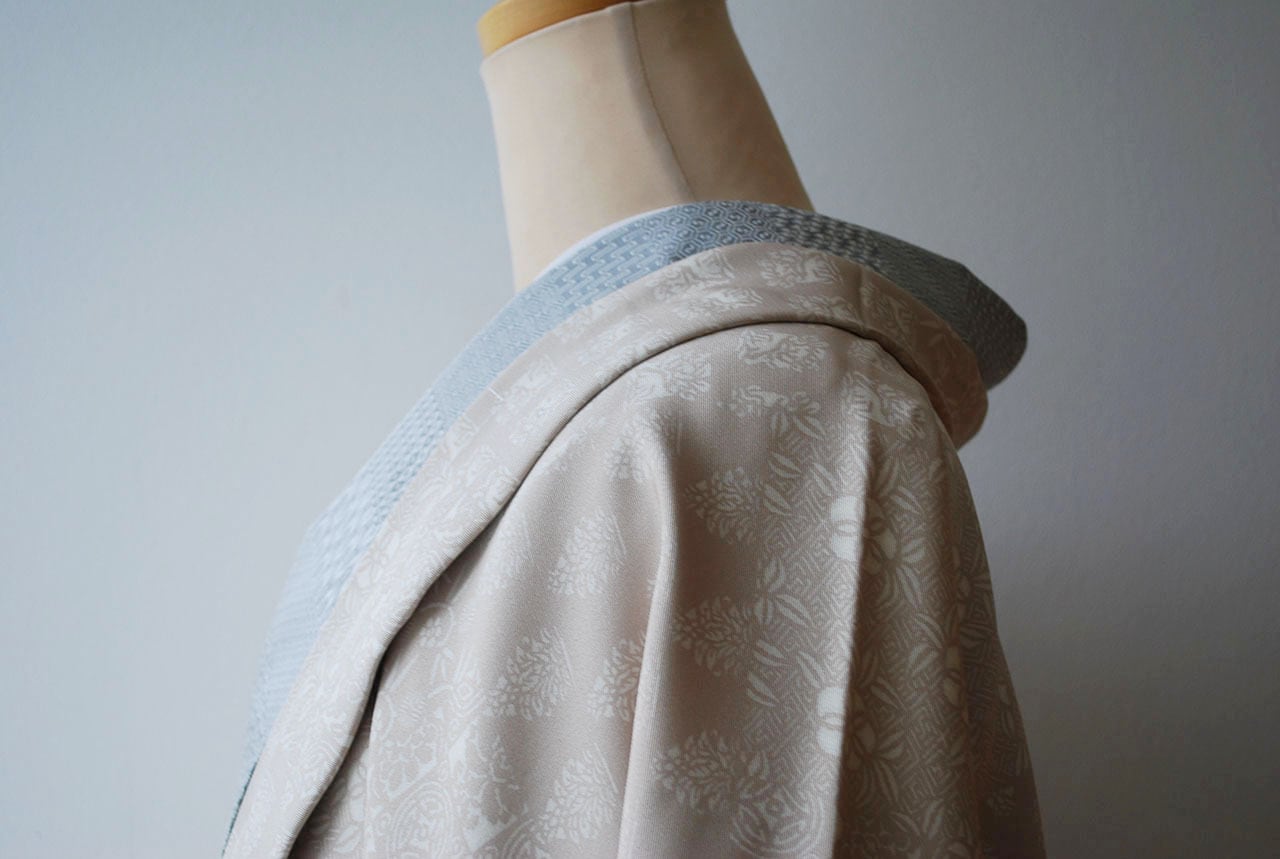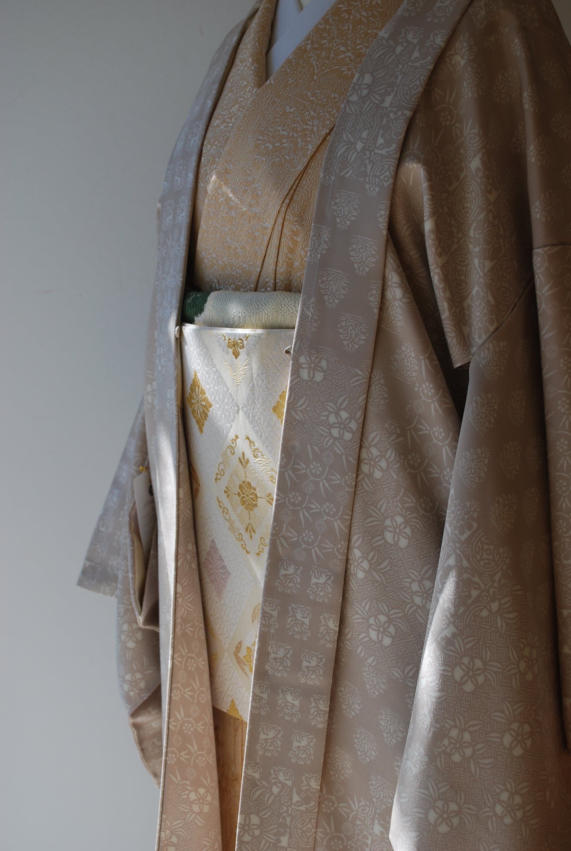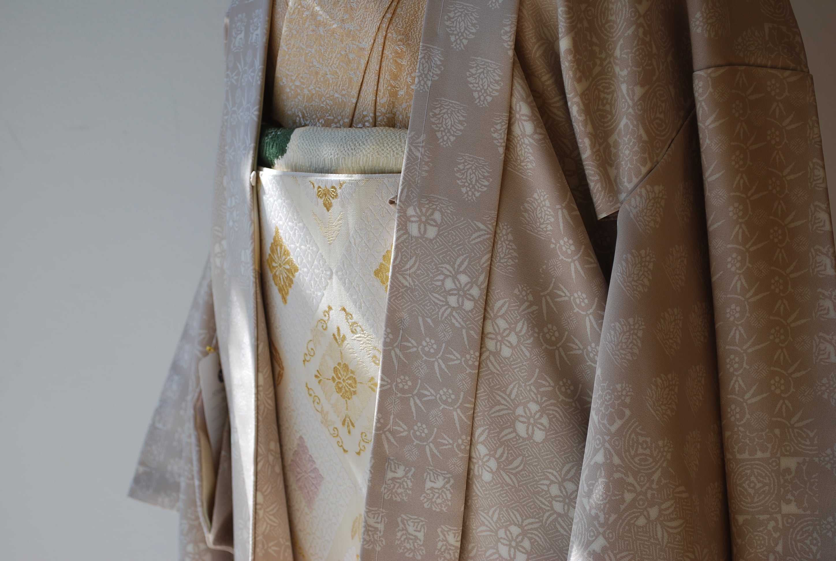 こちらは亜麻色の字にオフホワイト、コントラストを抑えた優しい配色ですので、さまざまなお着物に合わせてお召いただけそうです。