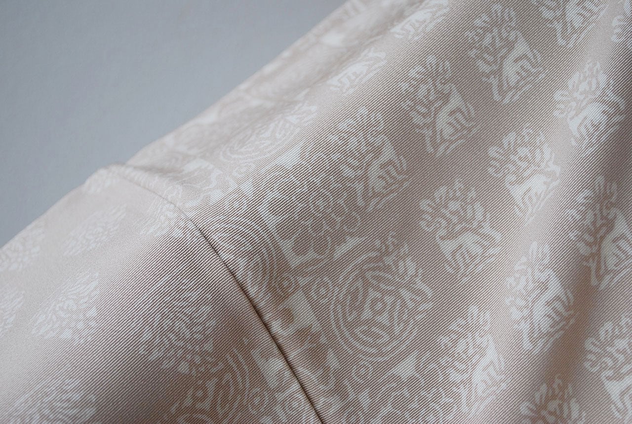 しっとりとした落ち感のきれいなお生地です。光沢感は控え目です。