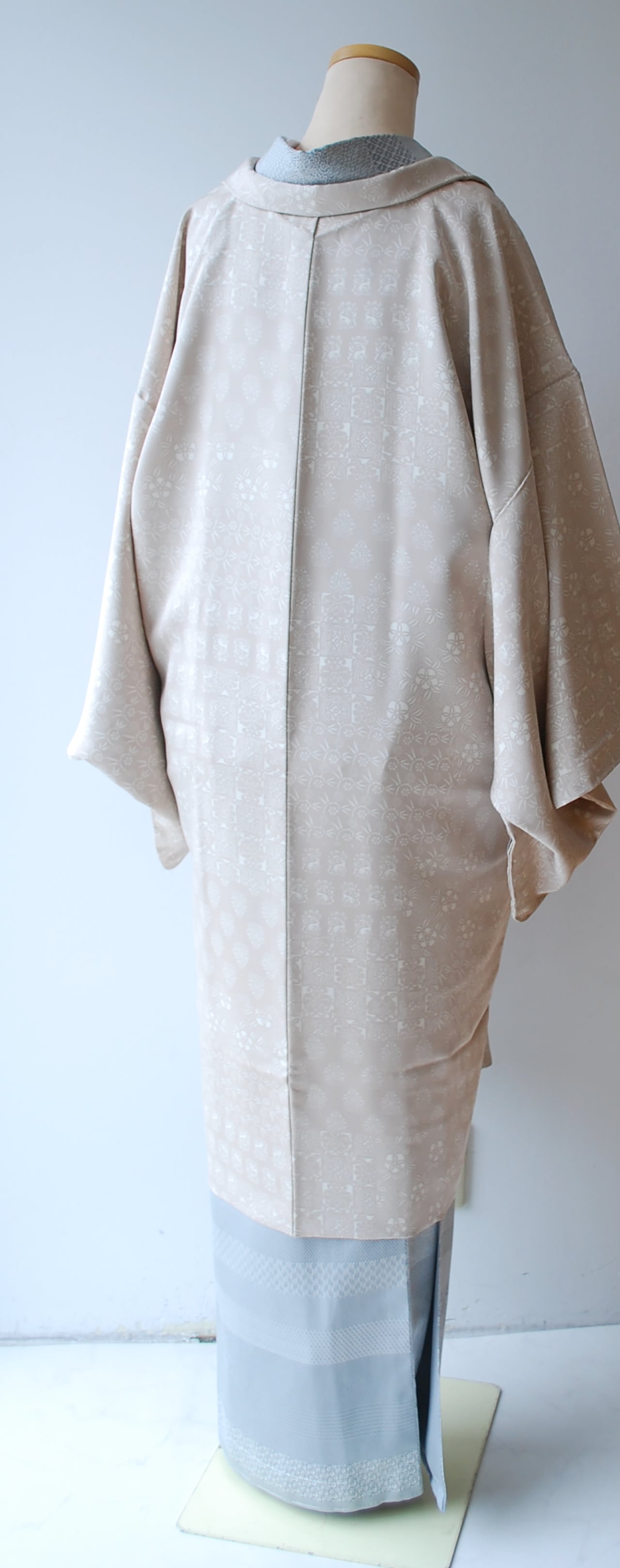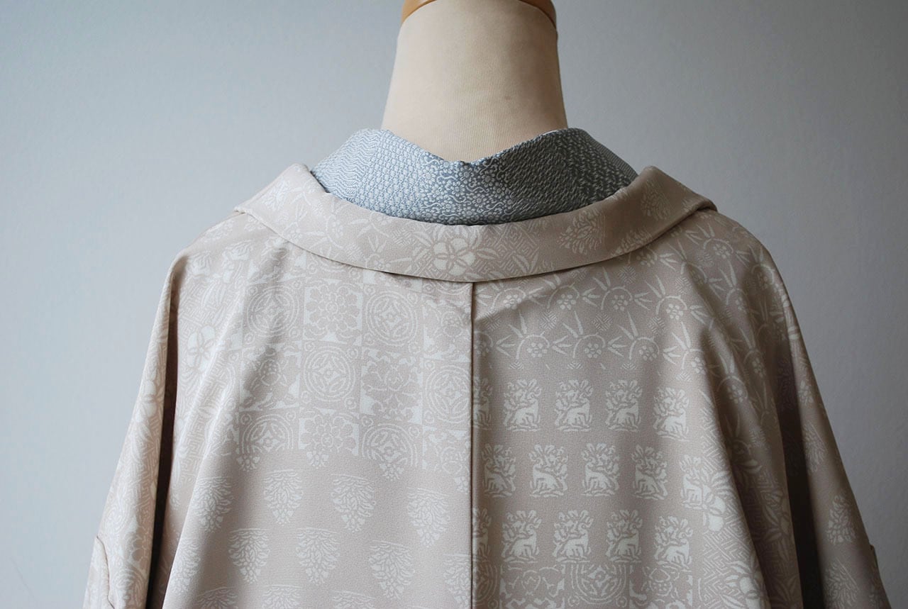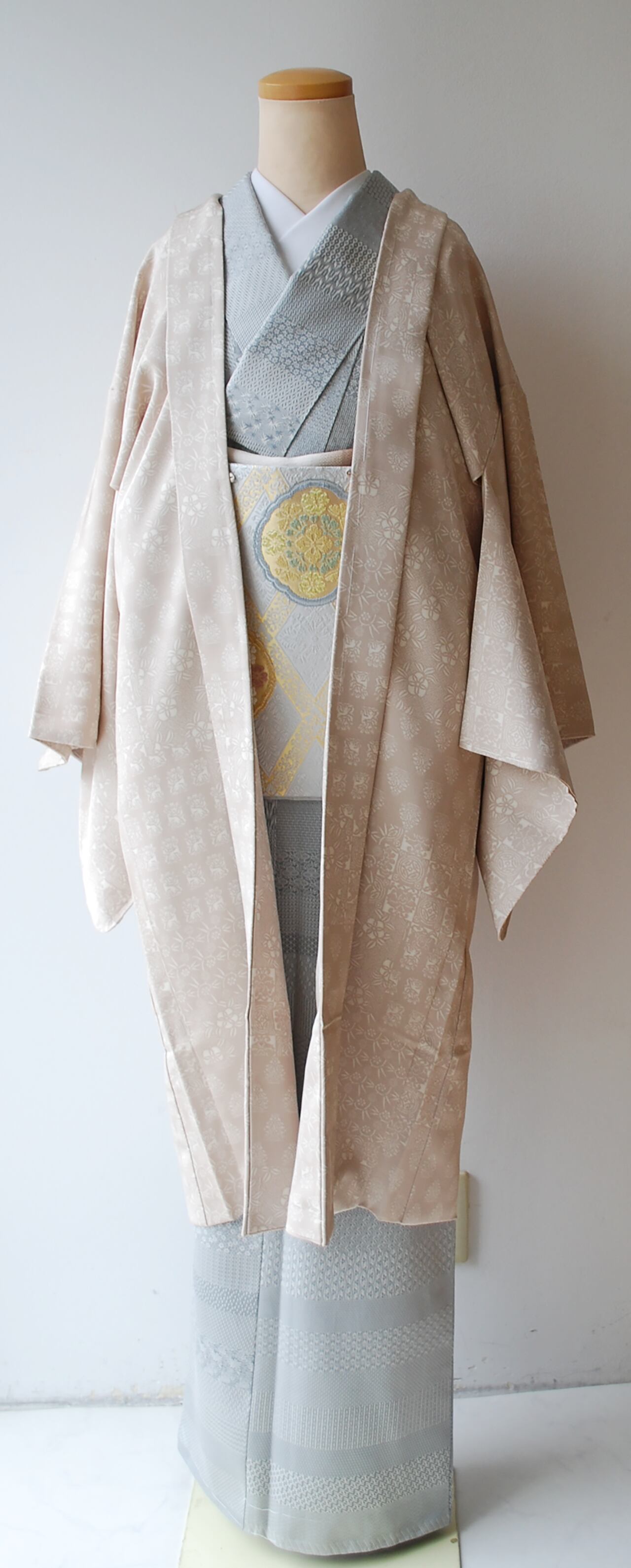 黄みと青みのバランスが程よいベージュ、明るい亜麻色の袷羽織です。